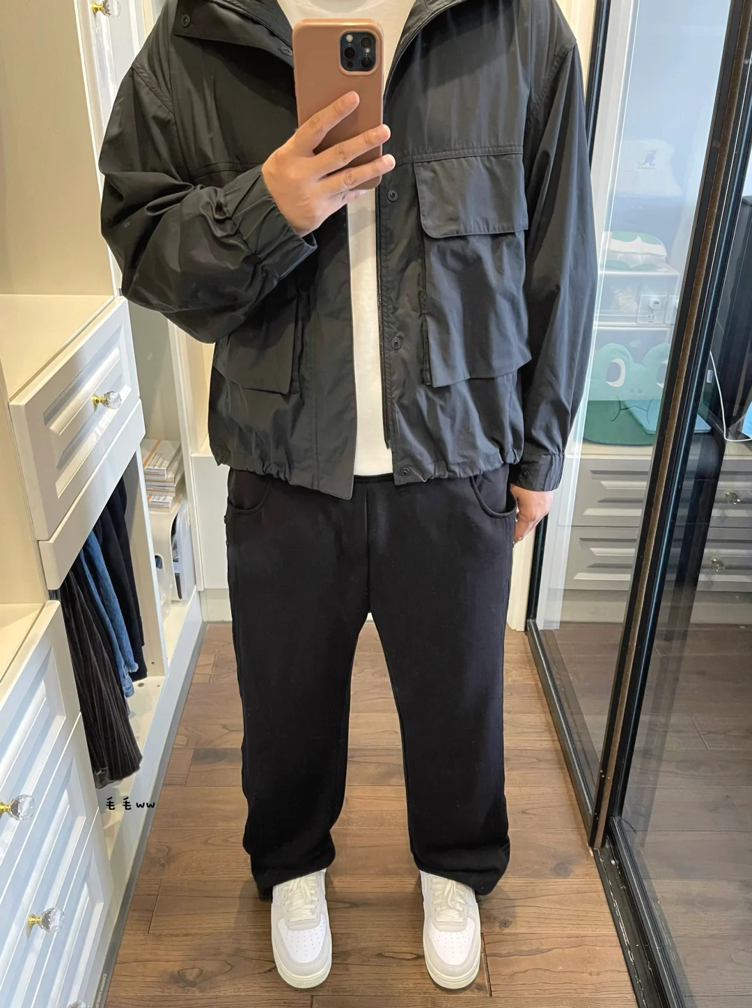 -U系列这件口袋夹克,面料出乎意外的薄,非常适合昼夜温差大的季节 . -短宽外套配合直筒裤,比例瞬间拉长;极简的黑白搭配,显高显瘦显腿型 . —————— . ✏️本人178cm75kg 球鞋尺码265mm(正常EU42) . 💭以上均为我个人观点,不喜勿喷,欢迎讨论