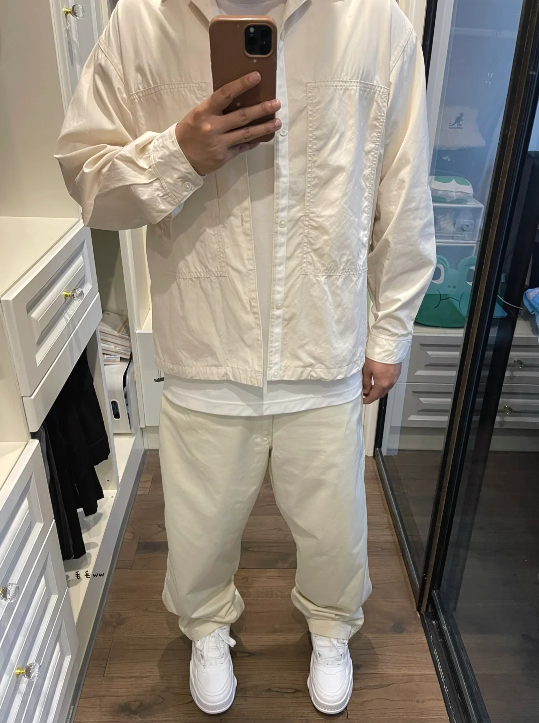 -春季叠穿,很少单穿衬衫,但会选择这种类似外套的类型,外穿会比贴身更有感觉 . -低饱和度米色系,带来的旧旧复古感;下装版型,直筒或阔腿皆可,白鞋呼应内搭 . —————— . ✏️本人178cm75kg 球鞋尺码265mm(正常EU42) . 💭以上均为我个人观点,不喜勿喷,欢迎讨论。