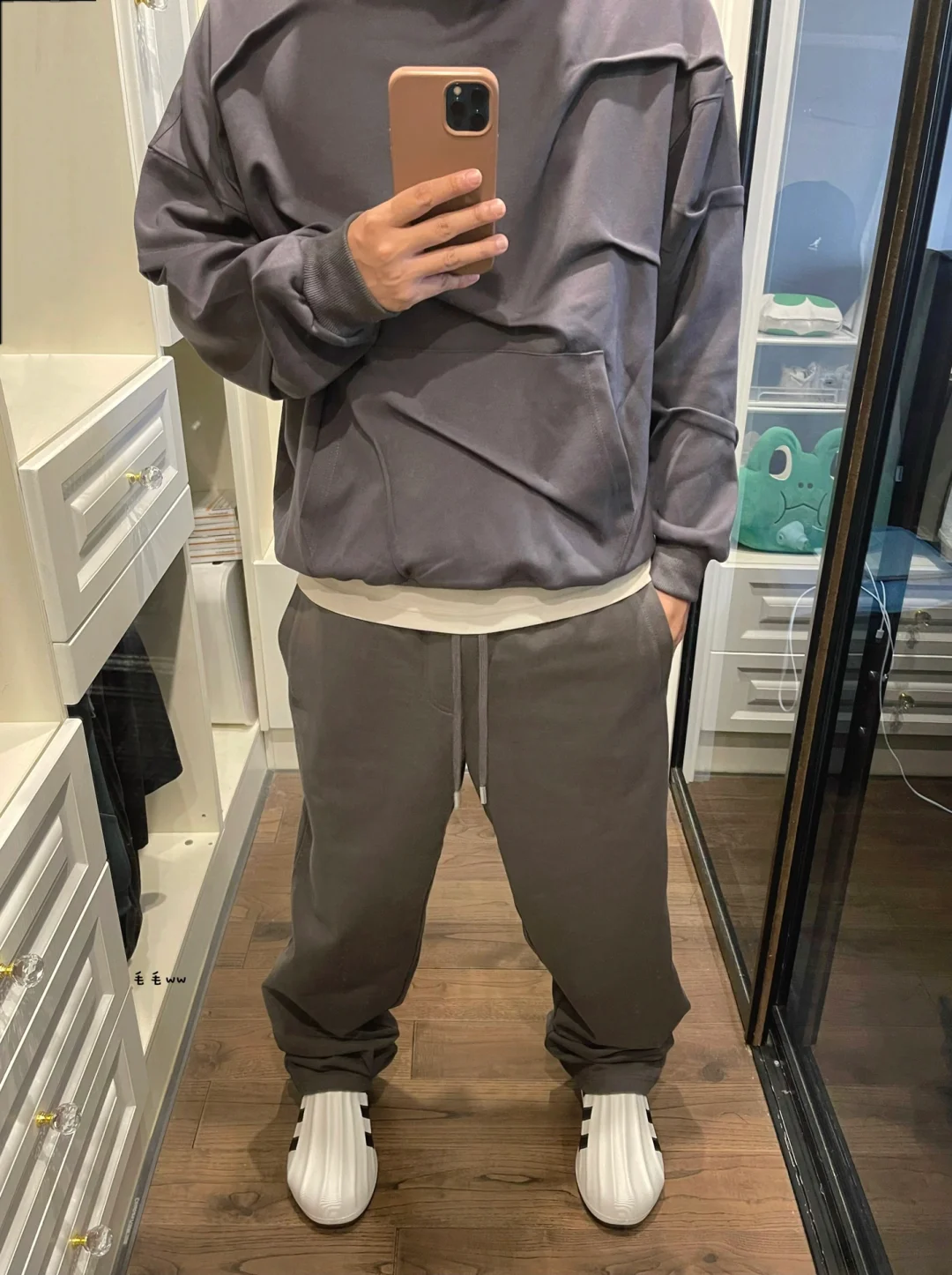 -秋冬季什么穿搭舒适且有效,一定少不了卫衣卫裤;棉质的亲肤感,任意风格匹配,通勤首选 . -除了频繁上身的黑白搭配,灰色系也可一试;浅灰的简洁感,青灰的高级感,也许会带来惊喜 . —————— . ✏️本人178cm75kg 球鞋尺码265mm(正常EU42) . 💭以上均为我个人观点,不喜勿喷,欢迎讨论。