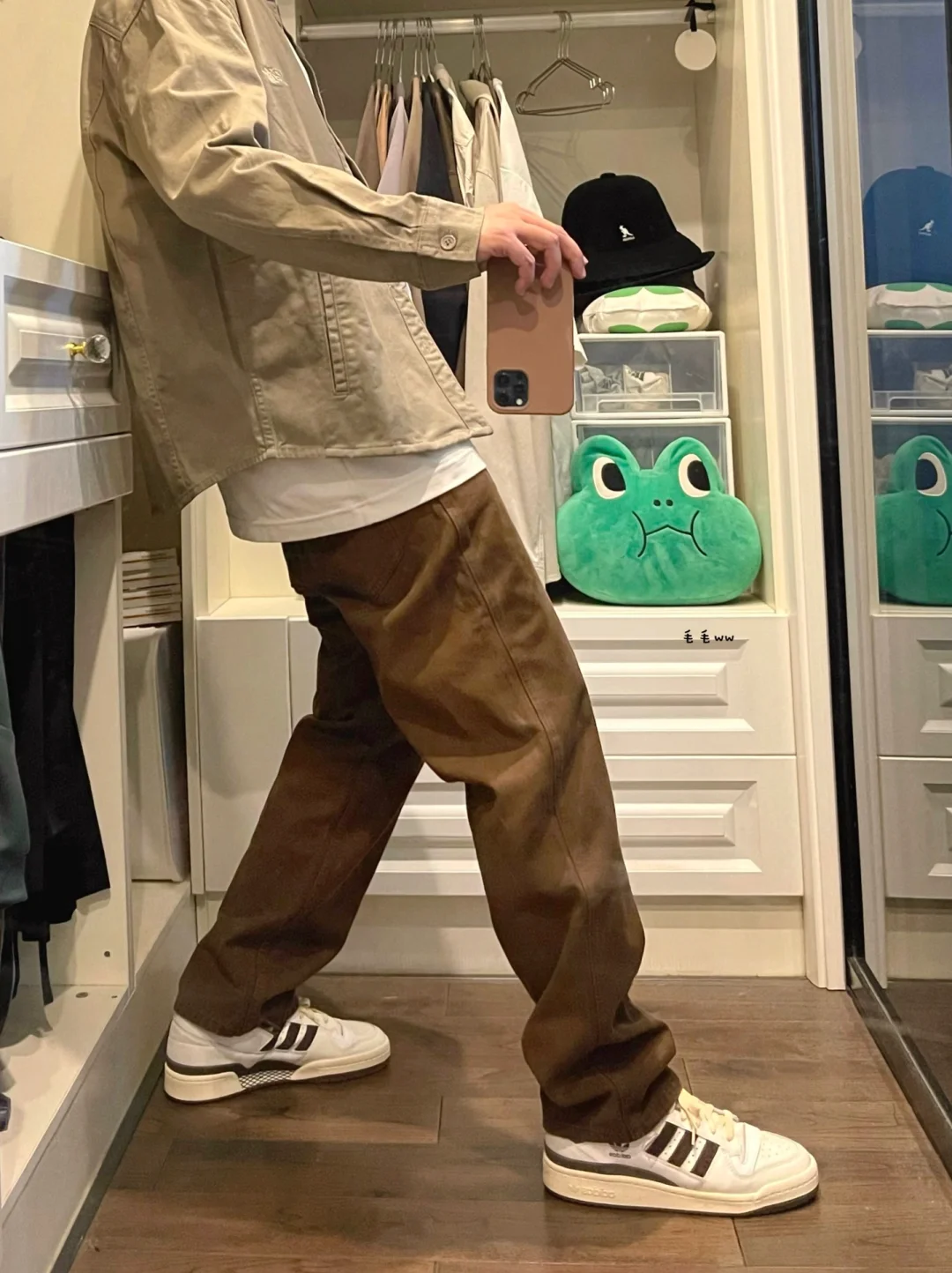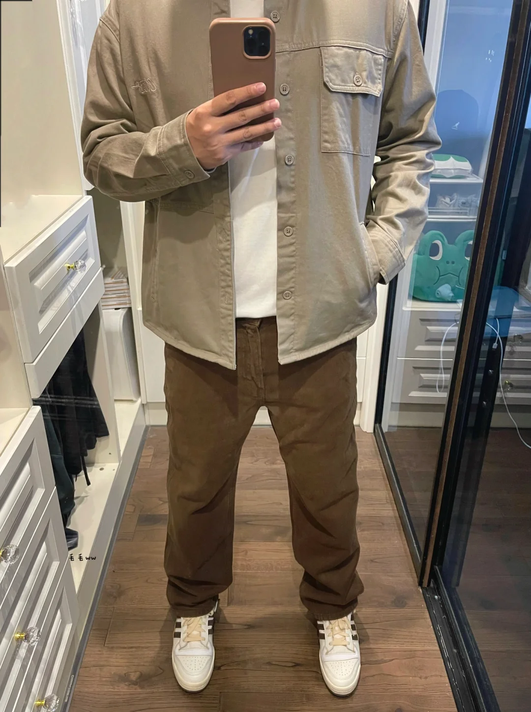 🍫秋冬大地色系,燕麦色碰撞巧克力 🐮丹宁元素穿搭,工装夹克配直筒裤 ☑️内搭长短不同,可以呈现不同效果 . —————— . ✏️本人178cm75kg 球鞋尺码265mm(正常EU42) . 💭以上均为我个人观点,不喜勿喷,欢迎讨论。
