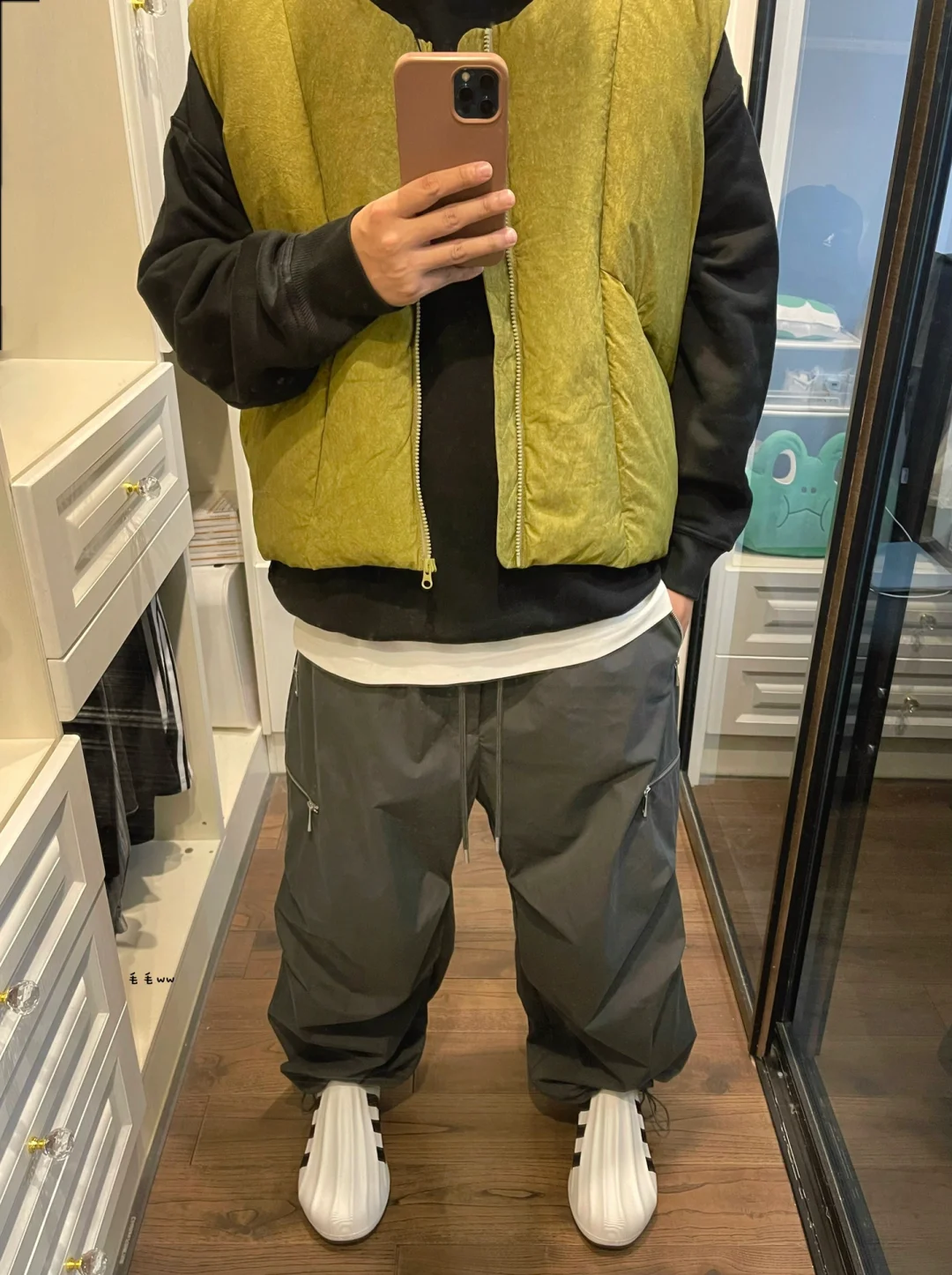 -极简穿搭,黑白灰三色,姜黄色提亮;马甲叠穿利器,层搭效果明显,瞬间分层 . -降落伞裤,今年穿太多,各家都在出;Z家特点在于五金与面料,喜欢磨砂手感 . —————— . ✏️本人178cm75kg 球鞋尺码265mm(正常EU42) . 💭以上均为我个人观点,不喜勿喷,欢迎讨论。