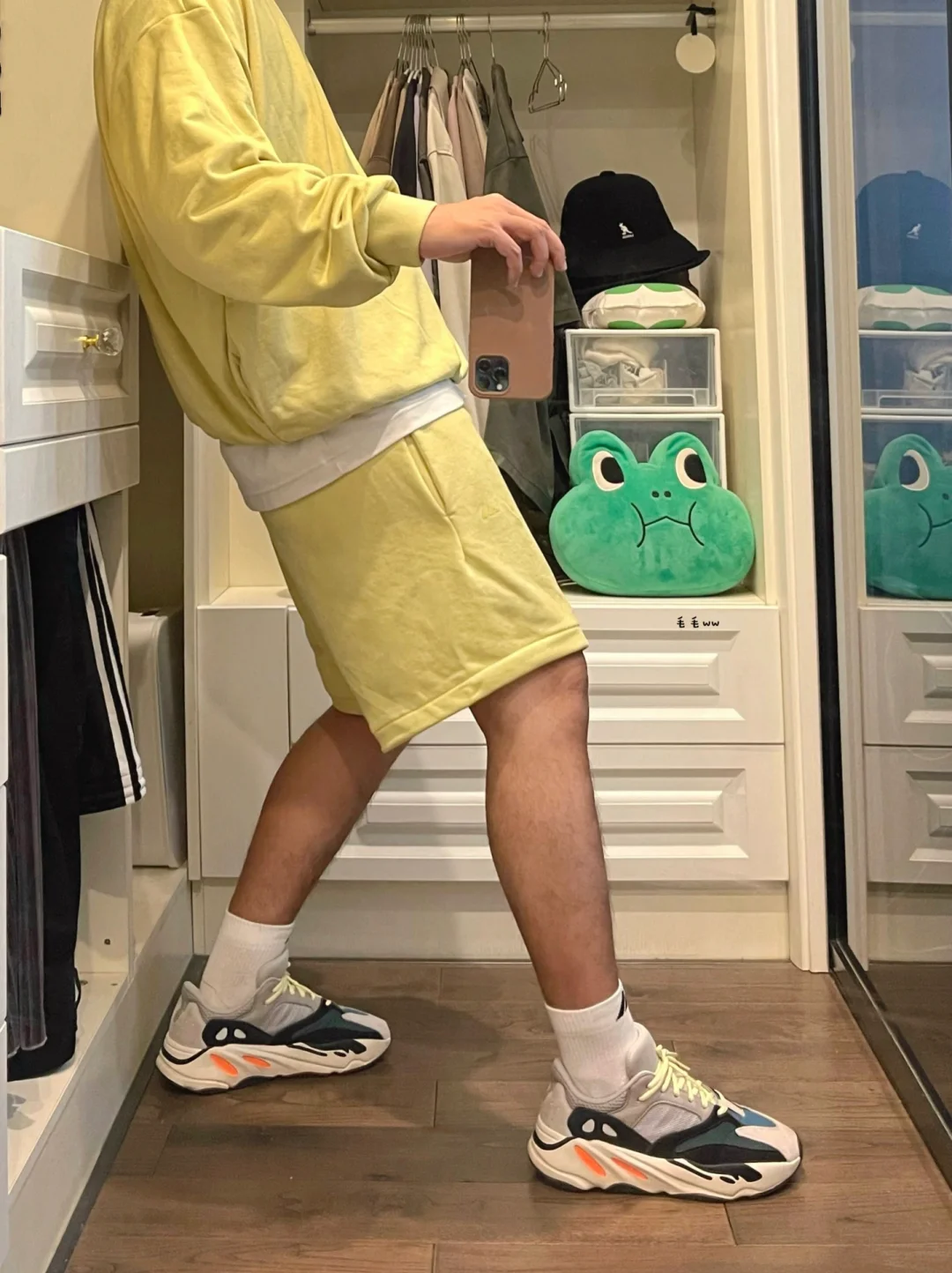🥑牛油果绿色系,主打一个清新;实物带点荧光偏黄,2024 collection的新材质,手感带绒类似麂皮 . 💨抓住秋天的尾巴,今年穿短裤的最后时机;上长下短的搭配,适合昼夜温差大,内搭长袜增加层次感 . —————— . ✏️本人178cm75kg 球鞋尺码265mm(正常EU42) . 💭以上均为我个人观点,不喜勿喷,欢迎讨论。