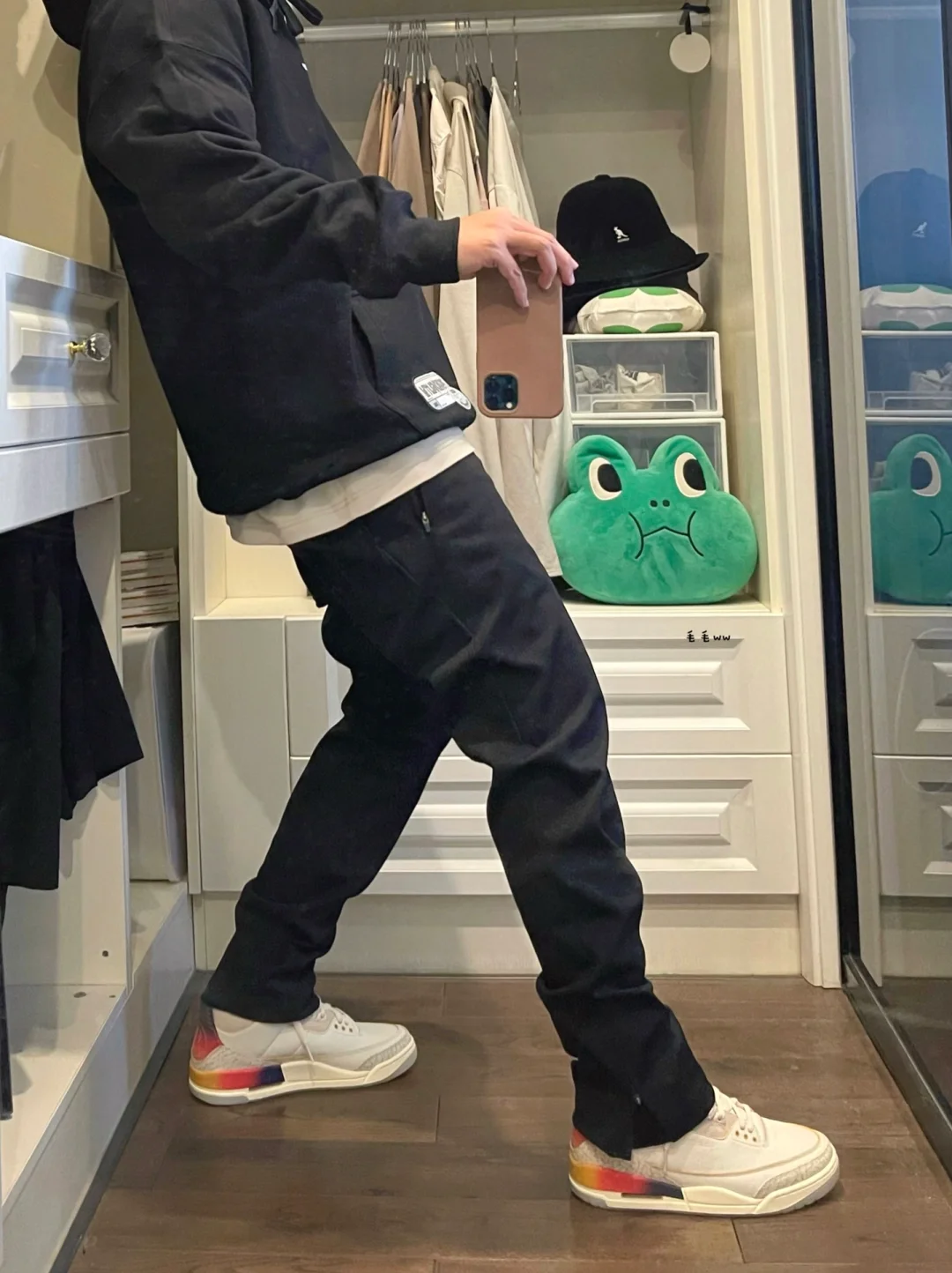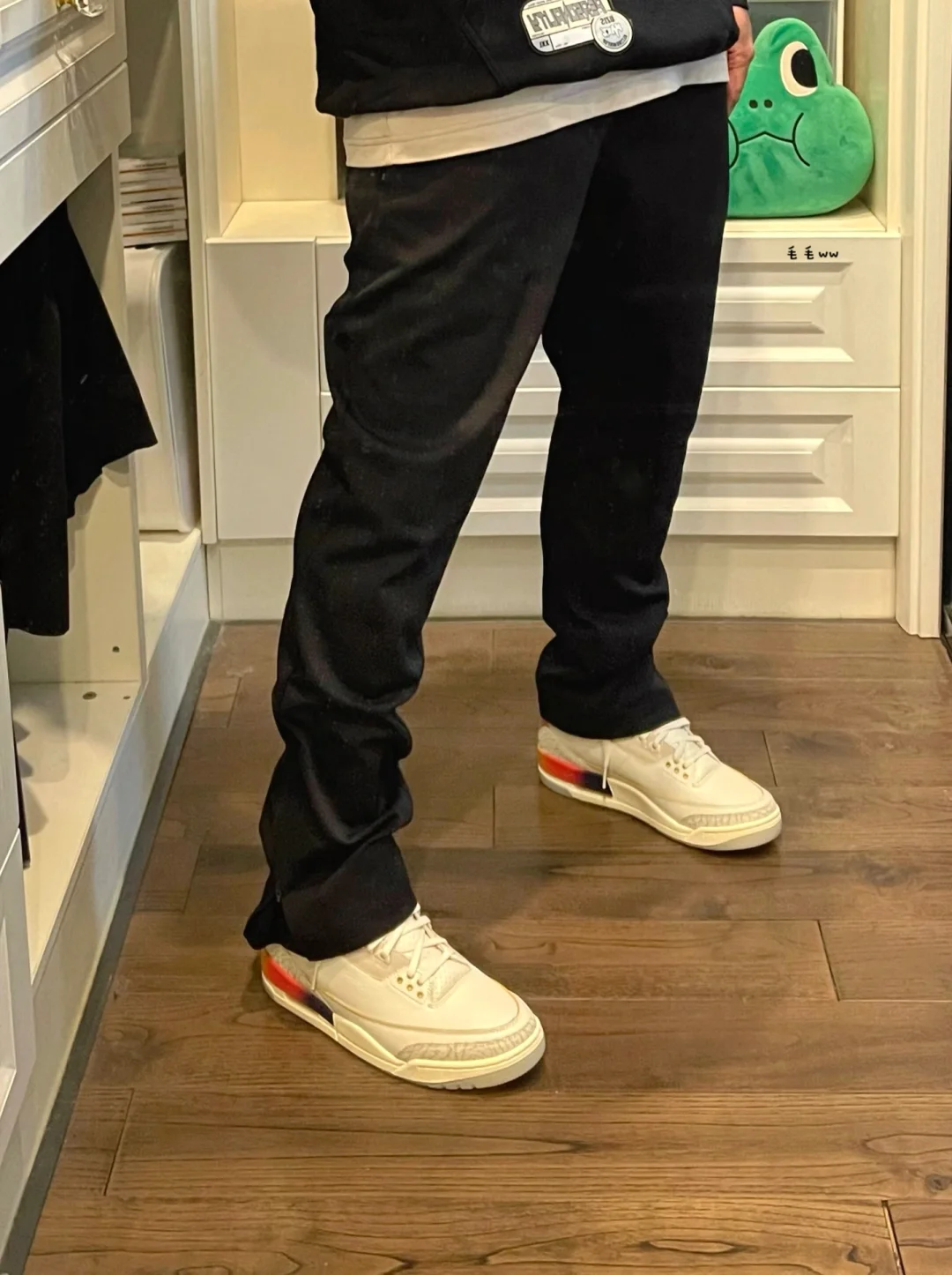 🌄AJ3日落配色,今年难得的宝藏联名款 🏴☠️全黑搭配,内搭与球鞋,运用米色呼应 ☑️乔三受欢迎的关键,基础裤型都能驾驭 . —————— . ✏️本人178cm75kg 球鞋尺码265mm(正常EU42) . 💭以上均为我个人观点,不喜勿喷,欢迎讨论。