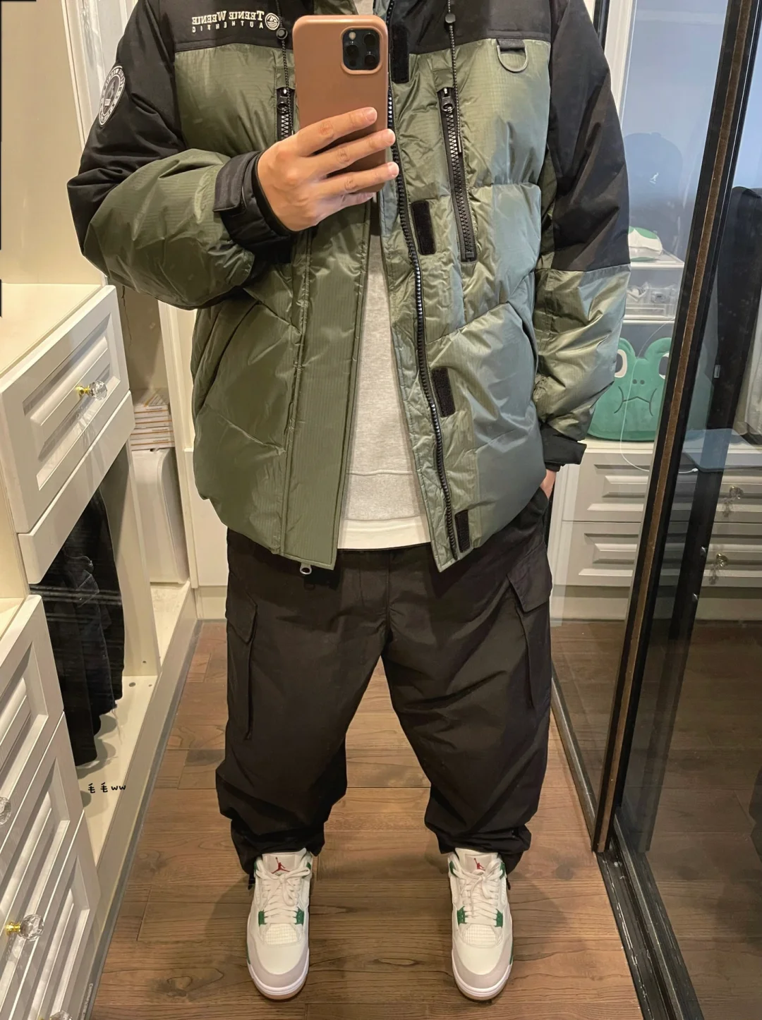 -入冬穿搭,绿色系是不错的选择;墨绿翠绿橄榄绿,不同的近色系做出层次 . -最后一月,又要做年度球鞋榜单了,这双自家联名乔四,大家觉得会上榜么 . —————— . ✏️本人178cm75kg 球鞋尺码265mm(正常EU42) . 💭以上均为我个人观点,不喜勿喷,欢迎讨论