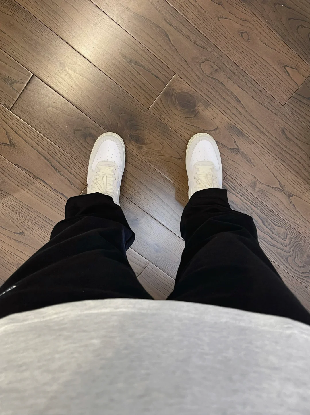 -极简穿搭,只需要黑白灰三色;黑色下装起到了修身的作用,显高显瘦直筒版型 . -不会搭配的时候,拿双空军一号就对了;仍然优先浅色,跟上装能匹配的灰白系 . —————— . ✏️本人178cm75kg 球鞋尺码265mm(正常EU42) . 💭以上均为我个人观点,不喜勿喷,欢迎讨论。