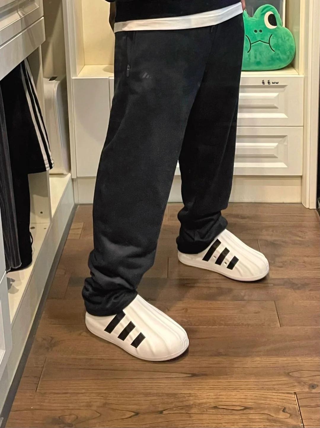 🍂秋冬也能穿的洞洞鞋,adifom做到了 ❄️一体成型能起到,一部分防风御寒效果 🐼黑白色系叠穿,有效层搭赶紧穿起来吧 . —————— . ✏️本人178cm75kg 球鞋尺码265mm(正常EU42) . 💭以上均为我个人观点,不喜勿喷,欢迎讨论。