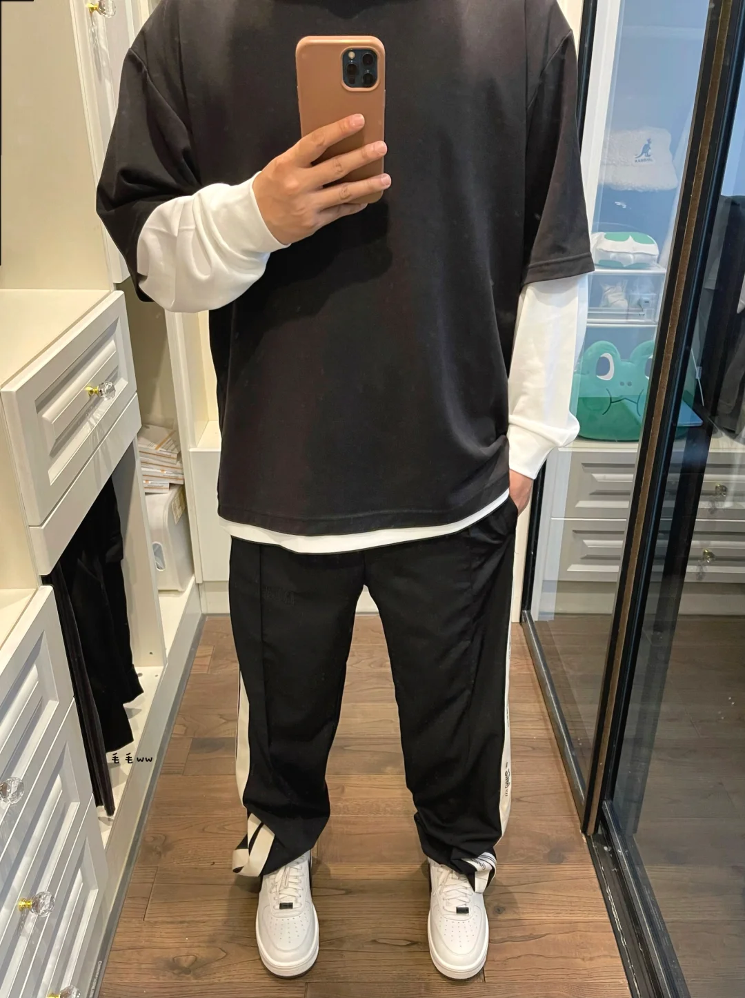 -优衣库穿搭,长短体恤的黑白叠穿,赶紧试试吧 -直筒裤选择,推荐纯色或者侧标条纹,效果不同 -百搭小白鞋,空军一号是鞋柜里不会出错的款式 . —————— . ✏️本人178cm75kg 球鞋尺码265mm(正常EU42) . 💭以上均为我个人观点,不喜勿喷,欢迎讨论。