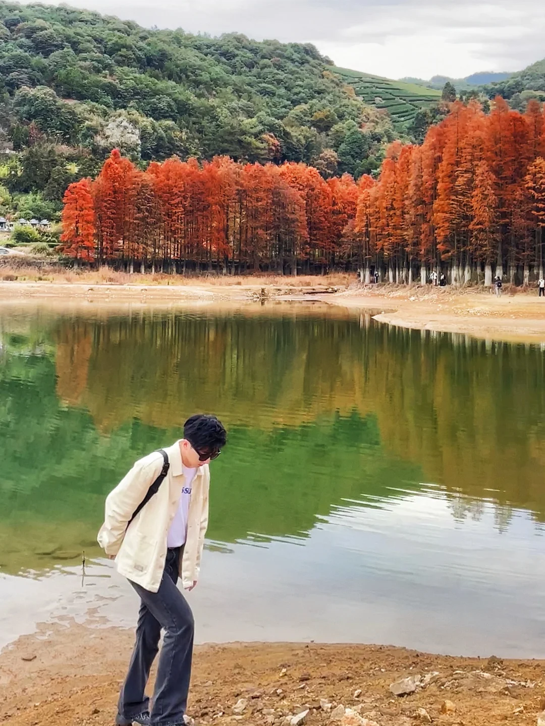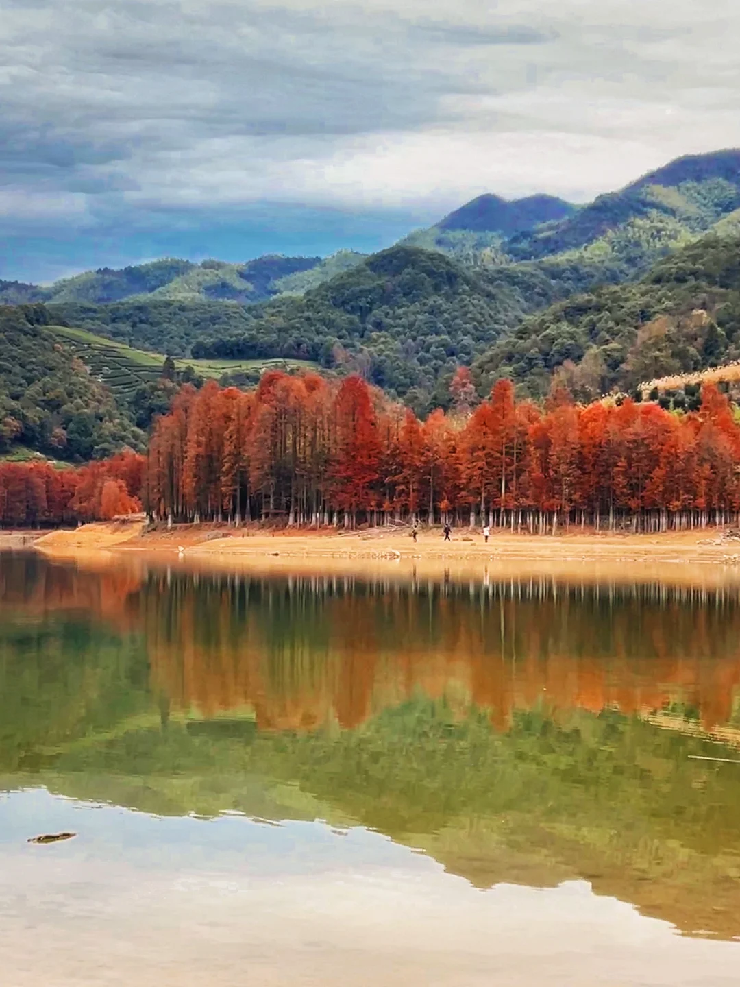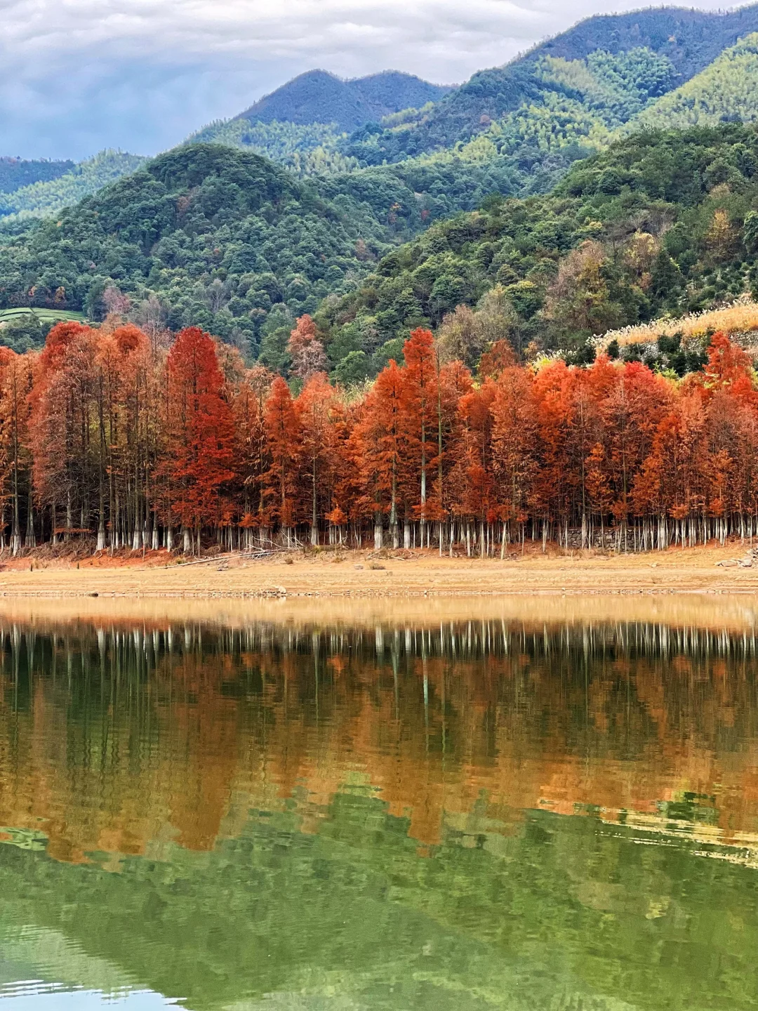 11月的绍兴·更楼真的好美!杉树由黄渐变至火红,倒映在碧波荡漾的湖水中,简直美如画卷!🤩 - 秋高气爽的时节,无论是带娃秋游还是约上朋友来此露营徒步,都好惬意🍂 - 徒步难度:⭐⭐⭐ 杉树呈红黄色——11月 杉树呈火红色——12月 📍起始地址:绍兴市嵊州市南山湖村 👉🏻If不徒步光露营赏秋,可以直接开到红杉林位置) - [一R]非环线(图3) 🔸全程约10公里,预计4.5小时走完全程 🔸终点和起点在两头,我跟的户外团,大巴会停在指定终点等待,或者提前包车在终点等候,自驾不适合该路线。 🔸如果从上海出发,一般11:00到徒步起点,下午三四点返程,全程慢悠悠,差不多晚上七八点就能回上海,杭州就更近了~ - [二R]环线(见图4) 🔸全程约19公里,预计7小时走完全程。 🔸如果从贵门更楼直接转向往雅安村走,则全程约14公里,预计5.5小时走完全程,可根据体力酌情选择路线。 🔸环线全程耗时较长,建议从早上八九点开始徒步 - ⚠️注意事项: 🍁南山湖村往前「三能中心」附近,有免费停车场 🍁路途中便利店、厕所点相隔较远,建议提前解决 🍁贵门村有家店的「年糕豆腐汤」非常好吃,有人可以连喝三碗,10元一碗可以无限续 - 📝携带物品:登山杖、墨镜、身份证、至少一瓶水、干粮、无人机(可选) --------------------