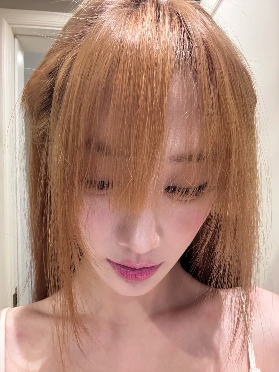 植了山羊角后自己洗完头就这样,两边是炸开的,每次都要打理好久,再分享下图里的唇釉也是最近喜欢用的~放在p5了
