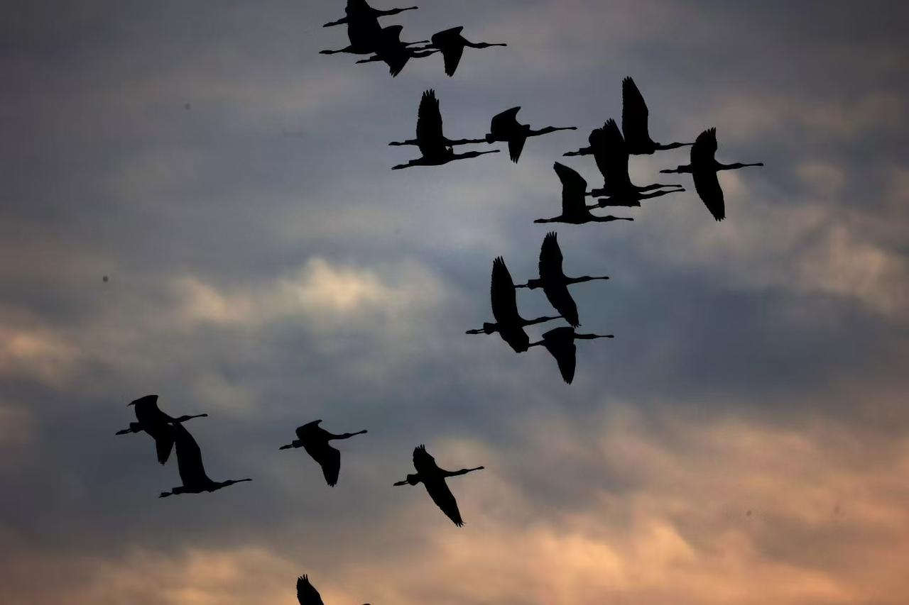 周末两天去东营黄河入海口观“鸟浪”意犹未尽,那鸟声、鸟影、美食一直挥之不去。 大片湿地雾气氤氲,水中的落羽杉、芦苇花、碱蓬草宛如莫奈的画作。第一天下午站在大堤边,在柔和的光影里,与“咸蛋黄”同框极为出片。百里观鸟长廊挨挨挤挤,人们分别从全国各地赶来,扛着长枪短炮,用脚丈量着芦苇丛。水杉衬着远处梧桐雅致感拉满,从高处俯瞰群鸟盘旋与暖阳共舞。 太阳慢慢落下去,只见北部天际线几十万只候鸟划破长空,鸣叫声撞碎云霄,向西向着光明飞,鸟浪上下翻飞,似泼墨、似沙盘、似绸带这哪里是飞鸟,分明是奔腾的生命洪流,力量的宣言,热烈的呐喊,它们正以天地为舞台,上演着震撼自然的奇迹。二十分钟后“表演”结束,人头攒动,车流涌动市里。欢乐一天的我们,直奔“老村长家”吃饭,“海鲜疙瘩汤”,Q弹爽滑荣登舌尖上的中国,“丈母娘烧鸡”即劲道儿又色香味俱全,“把子肉”肥而不腻入口即化……这一口,那一嘴荧光灯下美酒加咖啡,喂饱肌里内存。恍恍惚惚似仙入梦。 第二天一早我们又来了,看鸟观鸟,白天是大鸟的舞台,我们没有看够它,它把我们看烦了,一家子一家子飞鸟纷纷绕开,观鸟大堤飞行,难到我一语成谶鸟真烦人类?听摄影爱好者说,前一段时间有人用无人机拍鸟,误伤不少鸟儿,这些大雁怕了见人就躲,不怨喇叭里不停地喊:“禁止飞行无人机”。好在太阳给力越升越高,温暖柔和的光洒满静谧的水面,鸟儿们游弋其中,一会儿翩翩起舞留下一串串涟漪和影儿;一会儿引颈高歌,像是与河面轻语,此情此景承载着自然的美,让人沉浸在这如诗如画的景色里。 就要返程了,不忘去“老村长家”又大吃二喝一顿,还顺带着把当地名吃“史口烧鸡”带回家。据说这烧鸡有百年历史,那一锅老汤让匠人熬的从未断火,新料续旧汤,每一个烧鸡都浓缩了它的醇厚。鸡肉色泽红润,形整不散,轻撕之下,热气裹着浓香扑鼻而来,入口软烂脱骨苦中带甜,是人们心中家的味道。 东营之旅让人留连忘返。