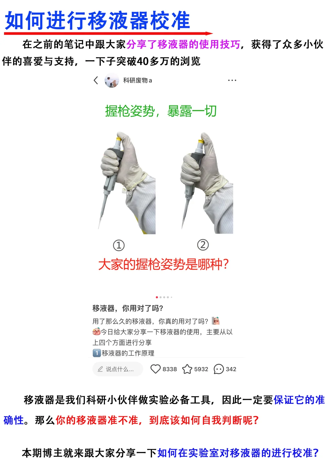 Hi-大家好!我是科研废物[猪头R],一名喜欢分享原理的科研博主 [向右R]本期跟大家分享的是如何判断你的移液器准不准?以及如何进行校准? 满满的干货,欢迎大家👍收藏,一起讨论交流呀
