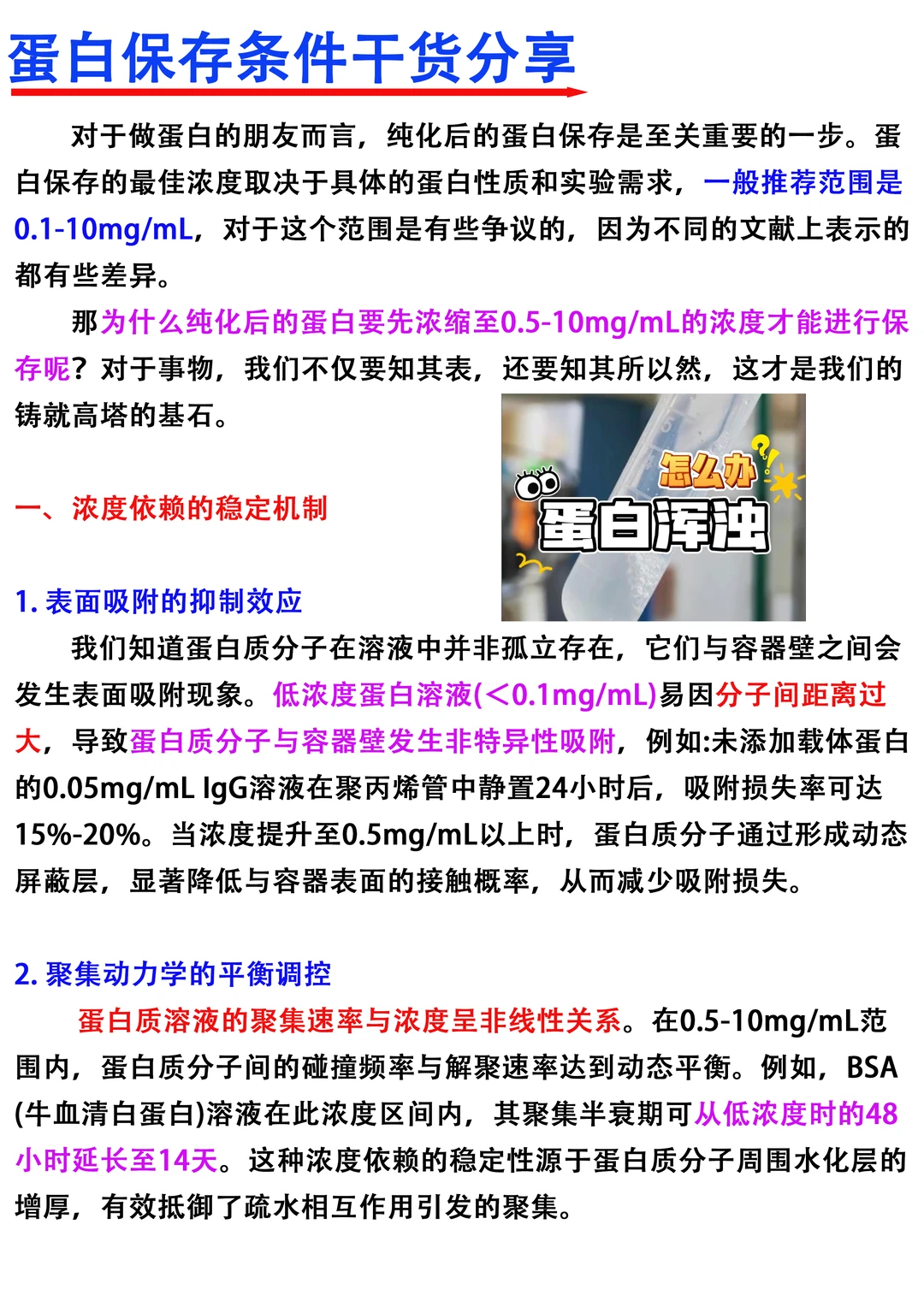 [蹲后续H]先做个小调查,做蛋白纯化的朋友多不多,举个手手呀,纯化后的蛋白保存是至关重要的一步,那为什么纯化后的蛋白要先浓缩至0.5-10mg/mL的浓度才能进行保存呢?[暗中观察R]