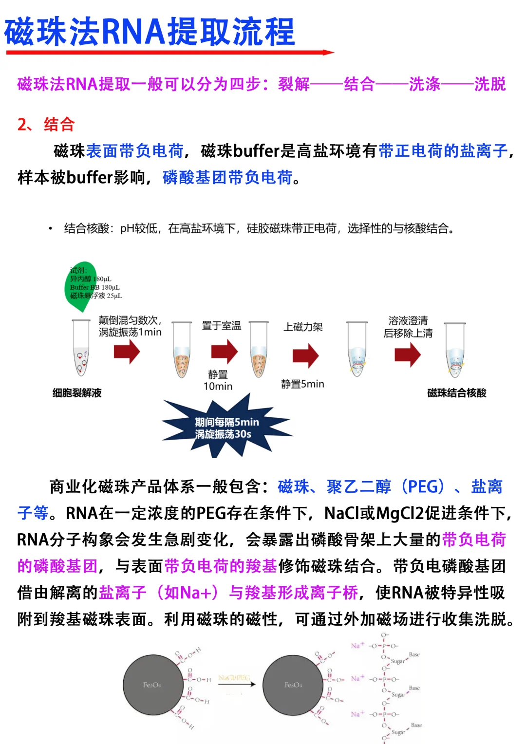 Hi~大家晚上好,我是科研废物,一名喜欢分享实验原理的科研博主[飞吻R] 本期跟大家分享的是磁珠法核酸提取技术 [向右R]主要从以下四个方面进行分享 1⃣️磁珠法核酸提取原理 2⃣️磁珠法核酸提取流程 3️⃣磁珠法RNA质量的检测 4️⃣RNA提取试剂盒分享 满满的干货与tips ,欢迎大家👍收藏,一起讨论交流呀!