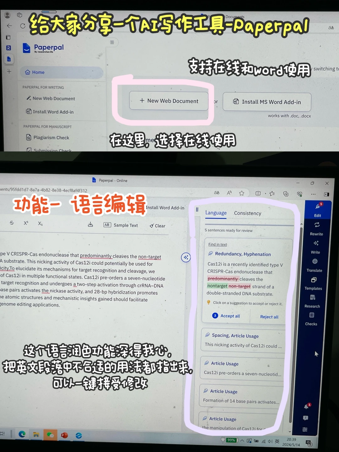 [一R]语言编辑,这个语言润色功能深得我心,把英文段落中不合适的语法都指出来了,可以一键接受修改