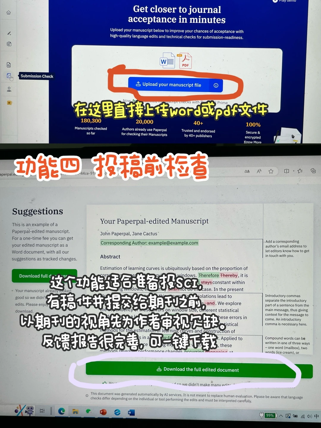 [四R]投稿前检查,这个功能适合准备投SCI,有稿件并提交给期刊之前,以期刊的视角先为作者审视欠缺,反馈报告很完善,可直接下载