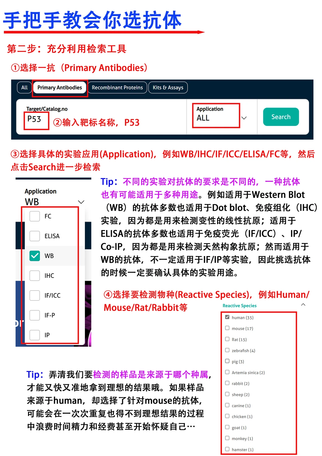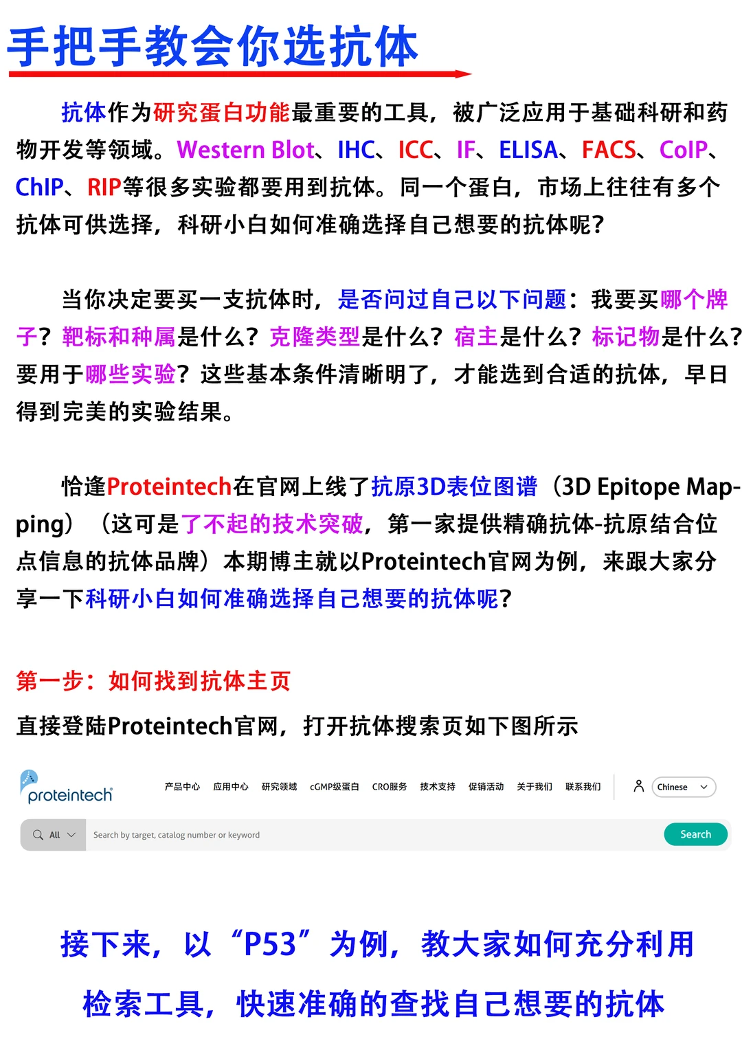 Hi~大家晚上好呀!我是科研废物[飞吻R],是一名喜欢分享科研原理的博主[猪头R] [打卡R] 当你决定要入手一支抗体时,是否问过自己以下问题:[举手R]我要买哪个牌子?靶标和种属是什么?克隆类型是什么?宿主是什么?标记物是什么?要用于哪些实验?接下来跟大家分享-科研小白如何选择抗体? [打卡R]本期主要从以下四个方面进行分享 1️⃣如何找到抗体主页 2️⃣充分利用检索工具 3️⃣搜索结果解读 4️⃣3D可视化表位图谱 满满的干货,欢迎大家👍收藏,一起讨论交流呀