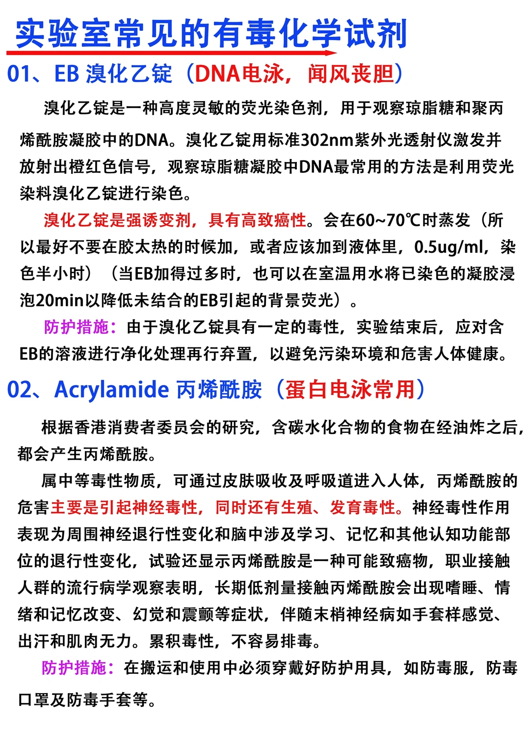 实验室,一个提供实验条件、专用于实验用途的场所,也是科学探究道路上不可或缺的一环 [石化R]在实验室工作的我们,少不了与各种试剂或材料打交道,其中有很多都是有毒有害试剂[扶墙R] [向右R]下面介绍一些实验室常见的有毒试剂,供大家日常实验时参考,做好防护[种草R]