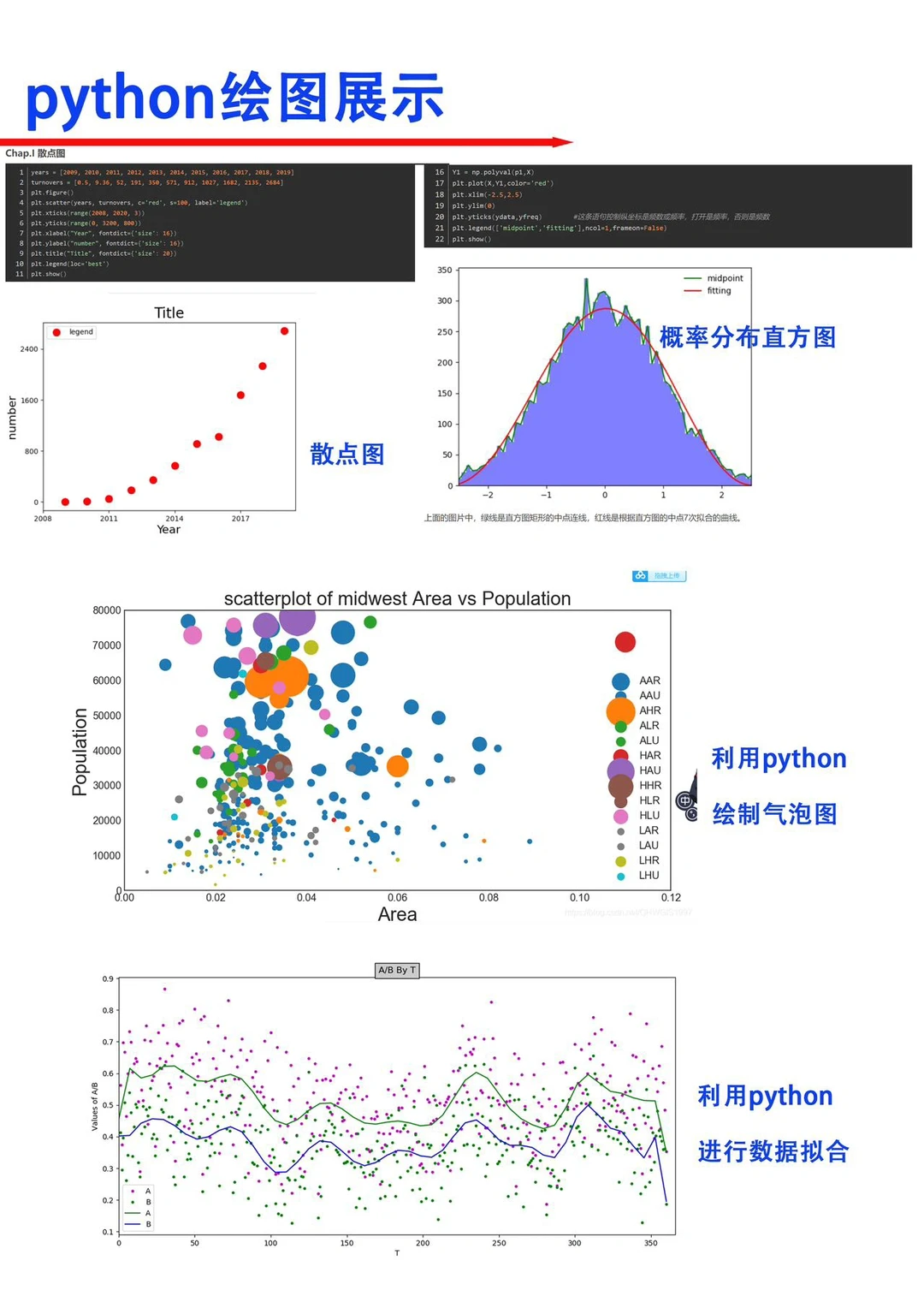 另外,python用来绘图也是很出色的,以下就是matplotlib绘图包一些示例图。