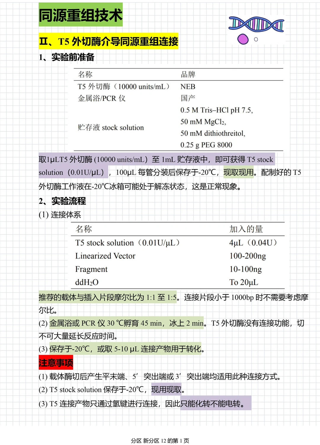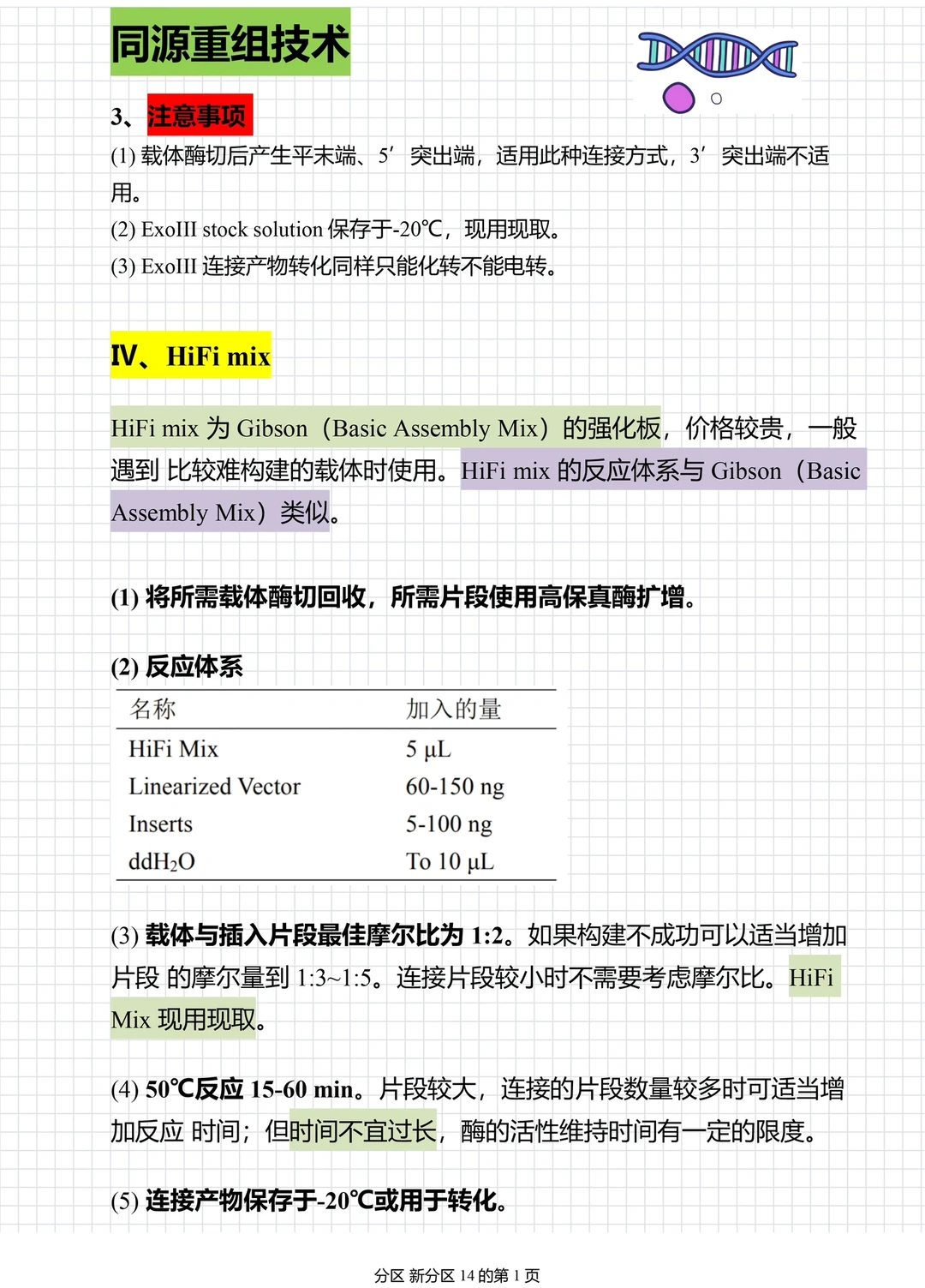 Hi~[向右R]今天跟大家分享的是同源重组技术 [打卡R]目前同源重组连接方式主要有 Gibson Assembly,T5,LIC,HiFi mix 四种方式,满满的干货与tips ,欢迎大家👍收藏! [暗中观察R]大家实验室常用的同源重组技术是哪些呢? [微笑R]如有不充分之处,欢迎大家讨论交流,一起学习!