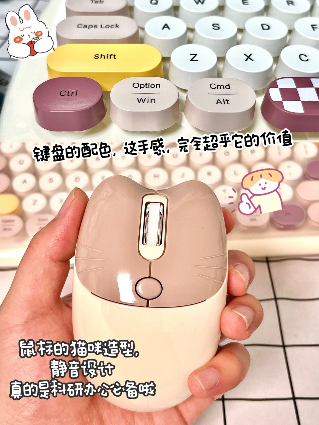 [购物车R]为了这个显示器,我还专门为它配了一套键鼠,摩天手家的,键鼠猫咪套装,[哇R]鼠标是可爱猫咪造型,静音设计,键盘配色高颜值压倒一切,手感相当好,科研办公好伴侣![赞R]真的物超所值![拔草R]