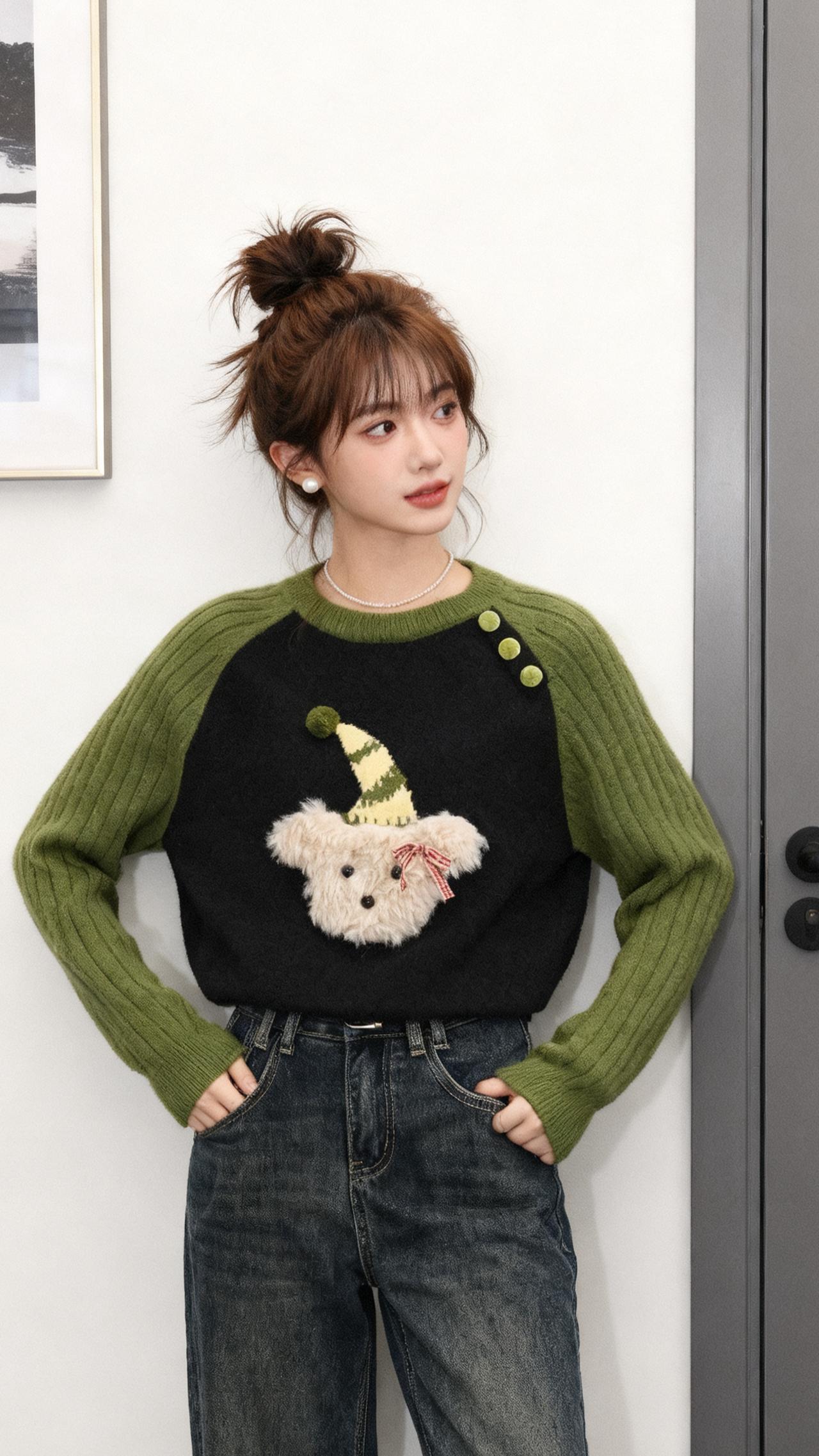 绿色慵懒套头宽松毛衣女外穿好看针织上衣减龄气质 上衣穿搭 这也太好看了 今天穿什么