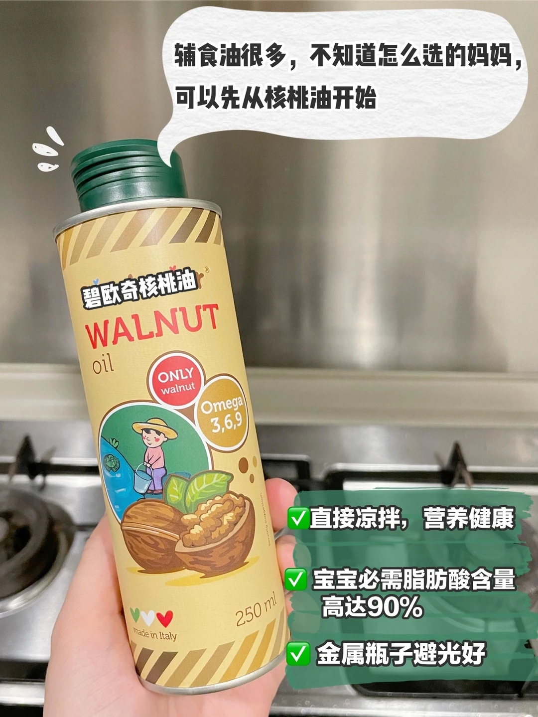 👉第一口辅食油:核桃油