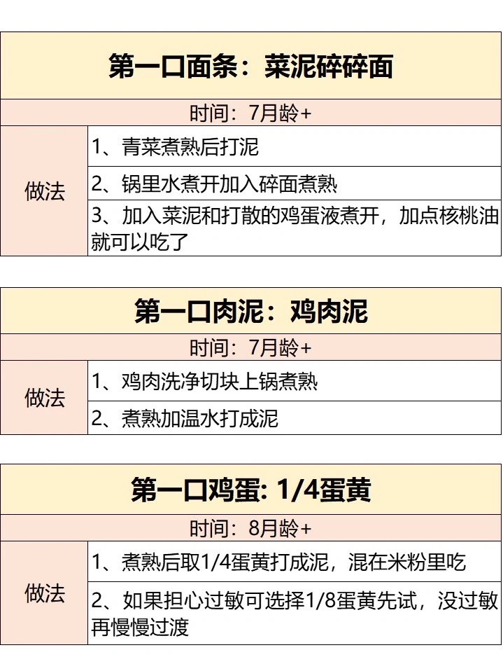 注:如果担心过敏,可先从1/8蛋黄开始,蛋清建议1岁后再添加