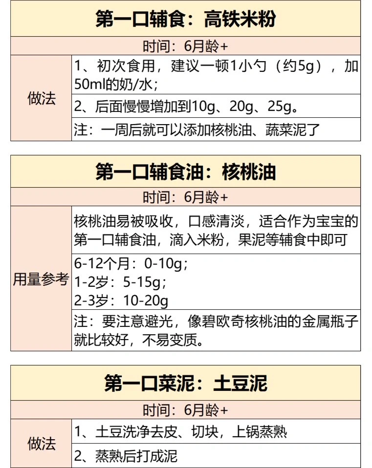 ✅我做了个6-12月龄的辅食表