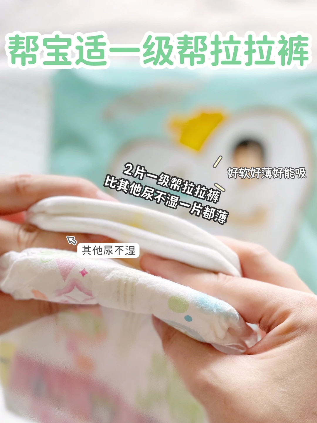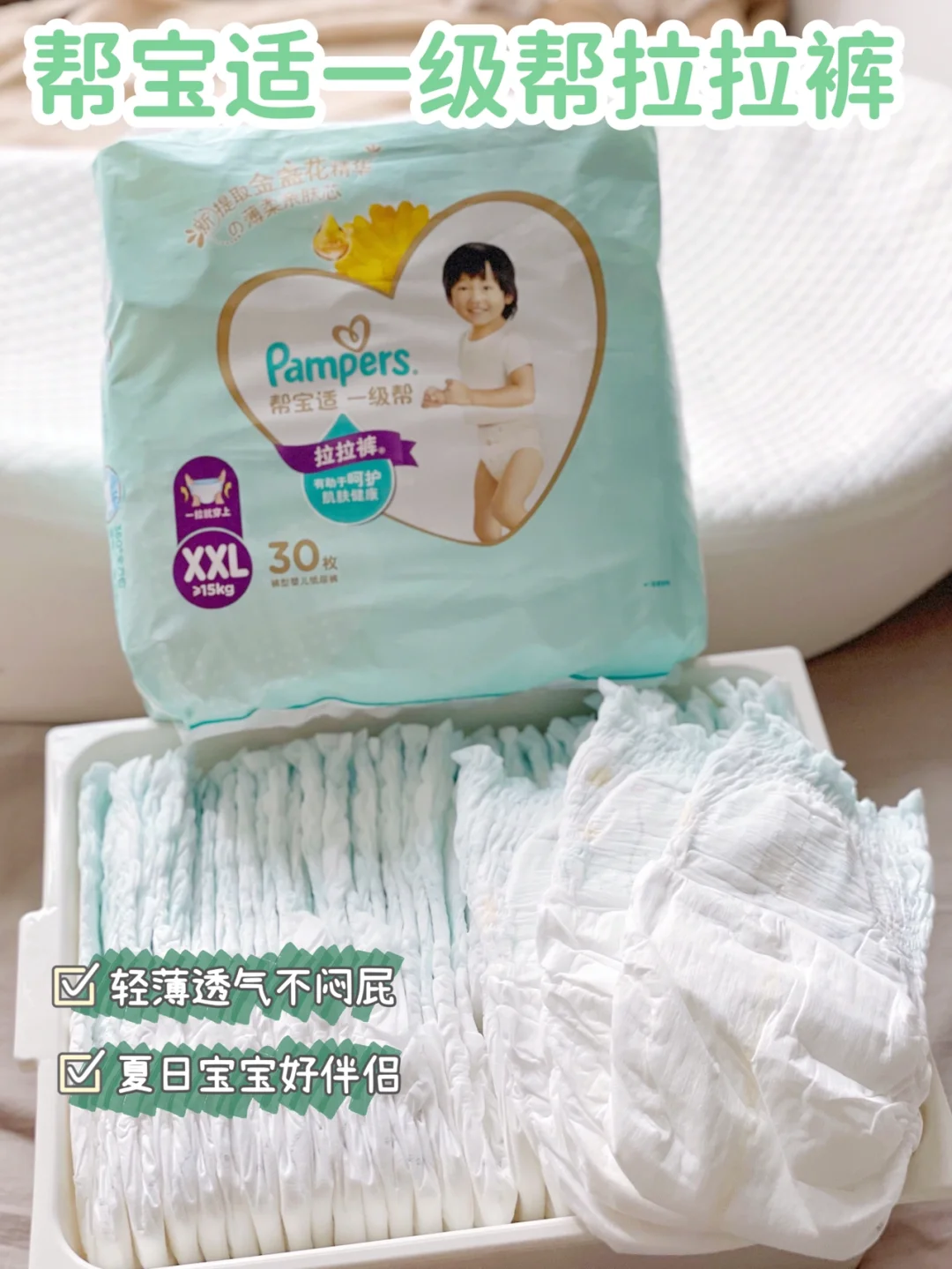 这个时候就不得不说一下,回购了n次的👉帮宝适一级帮拉拉裤了,尤其适合夏天,好软好能吸。更别说今年又升级了,两片加起来比其他尿不湿一片都薄‼而且超透气,简直是夏天的本命拉拉裤;那么薄吸力还挺大,干干爽爽不会反渗~宝宝👶🏻怎么爬高上低的,都不会漏~