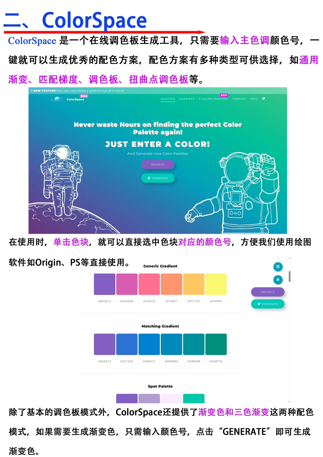 [向右R]今天为大家分享一些十分好用的配色 网站,助力大家的科研绘图工作。 1⃣️ Culrs是一个比较综合型的配色 网站 2⃣️ ColorSpace 是一个在线调色板生成工具 3⃣️ ColorLeap就是一款复古式配色 网站 ~~~~ 奉劝大家没做好准备千万别冲动养猫🐱,真的太耗费精力了,每天担心它吃不好,睡不好的,还要给它买玩具,晚上还经常被吵醒,给它准备的食物还不一定吃[叹气R]