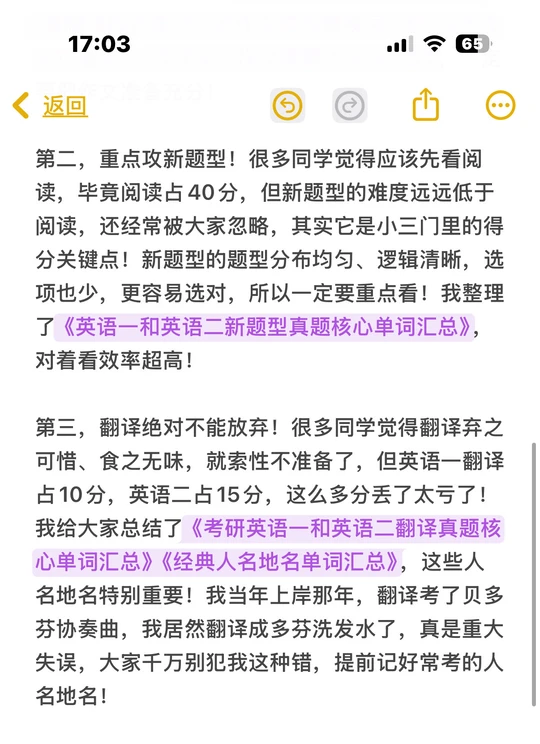 2. 重点攻新题型!它难度远低于阅读,题型清晰易得分,看《英语一和英语二新题型真题核心单词汇总》就行。