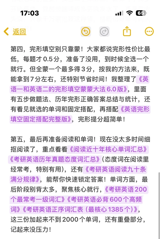 4. 完形别全蒙!全蒙最多3分,用《英语一和英语二的完形填空蒙蒙大法6.0版》《英语完形填空固定搭配完整版》,能冲7分还省时。