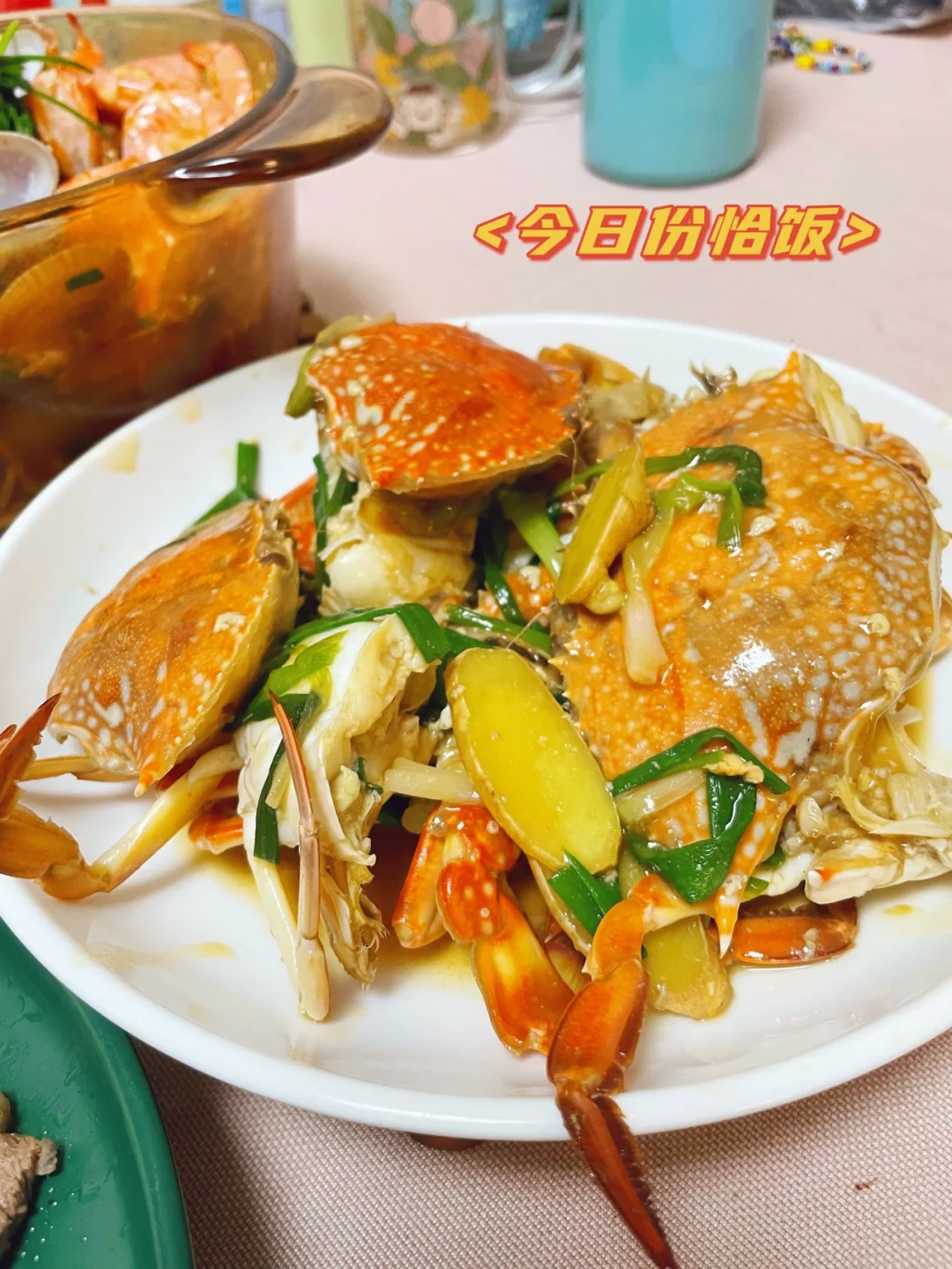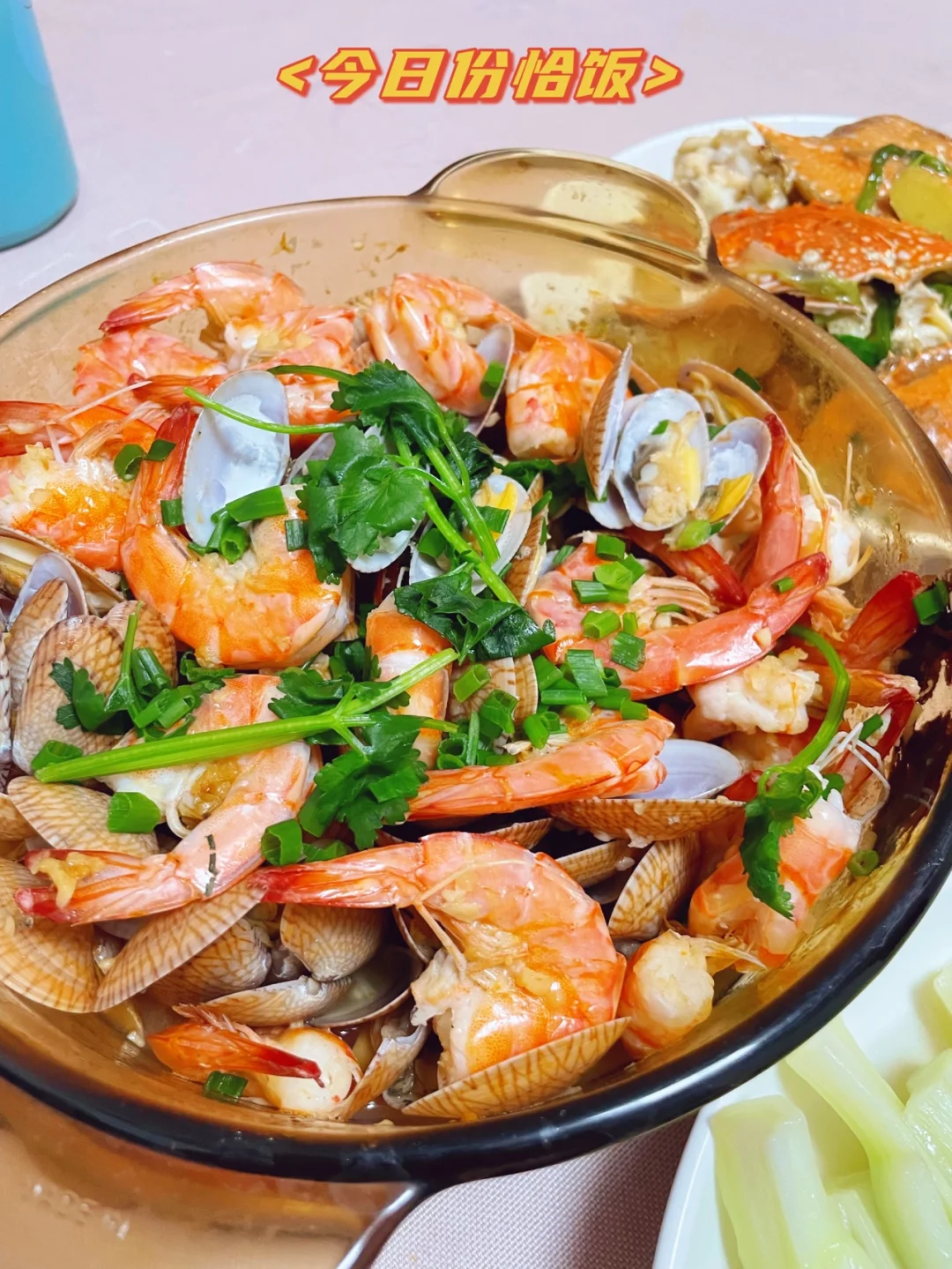 自由的晚上,随便做点海鲜吃吃 煎牛排 姜葱炒蟹 花甲金针菇虾煲 当然还有广东人每顿必吃的叶子菜[微笑R]