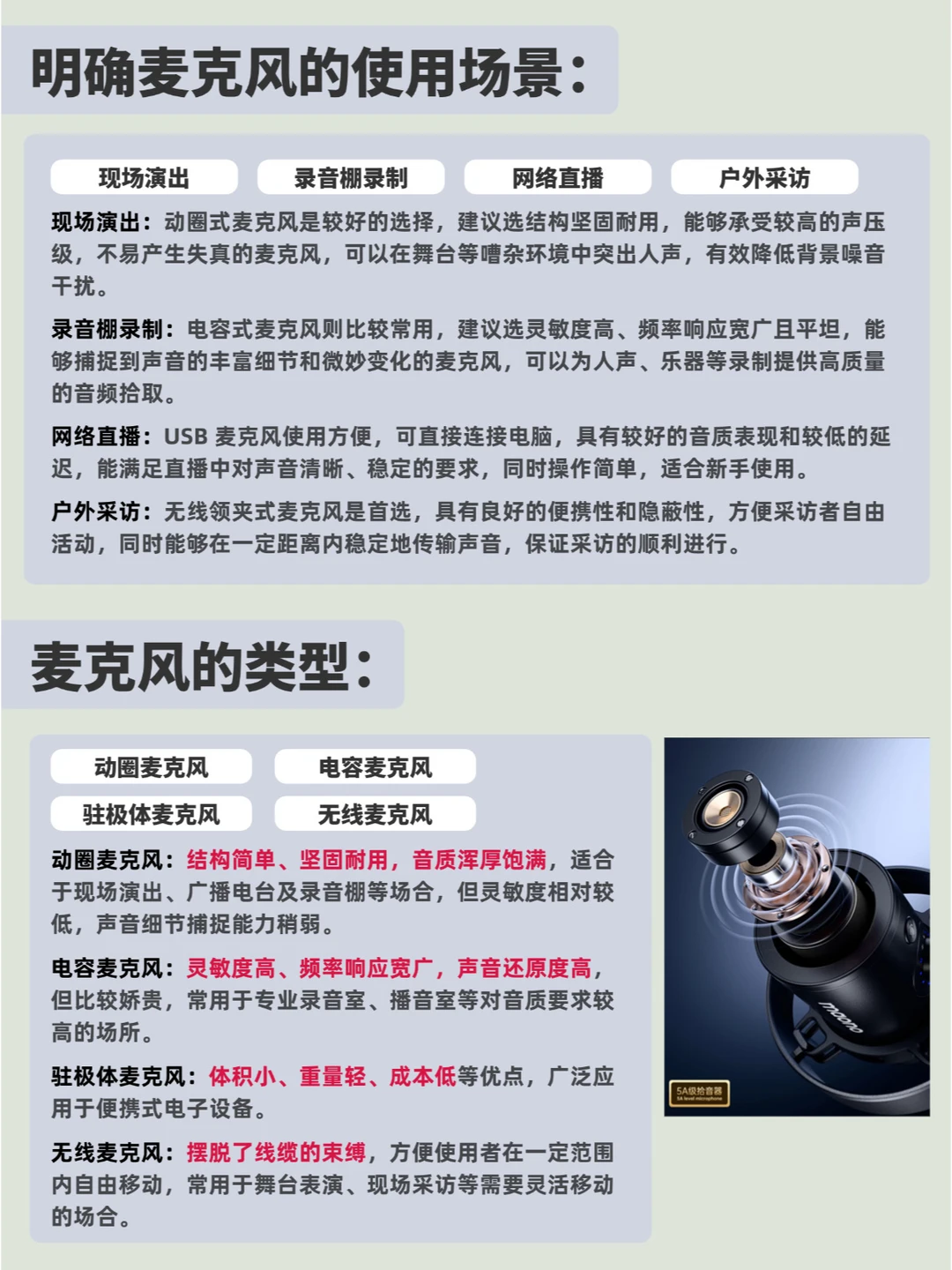 小陈比较推荐动圈麦克风,结构简单,兼顾耐用,且音质浑厚饱满,比较适合直播这种场景。那需要注意什么配置呢?