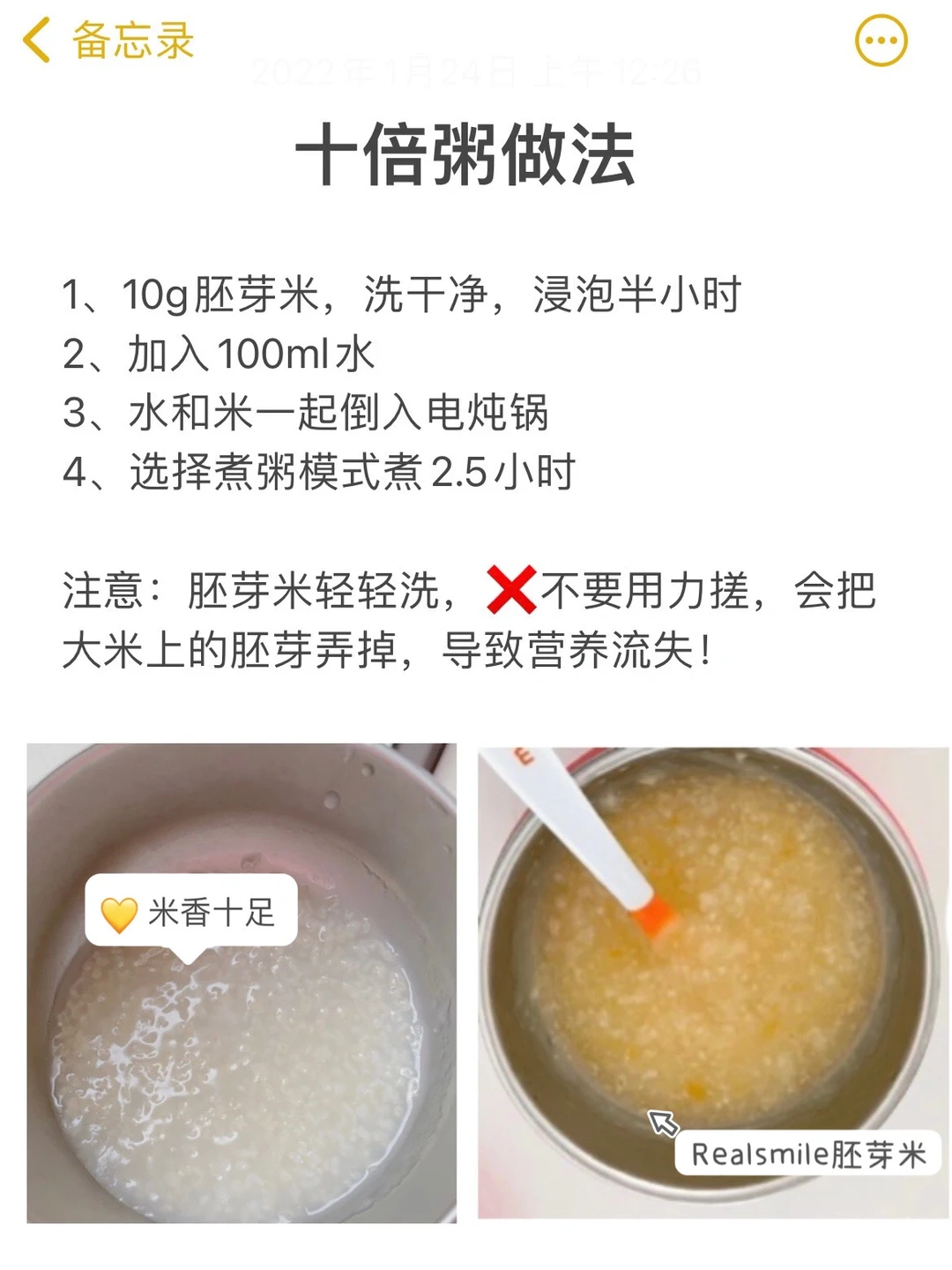 宝宝辅食经历了6月龄的高铁米粉后,就是十倍粥啦~