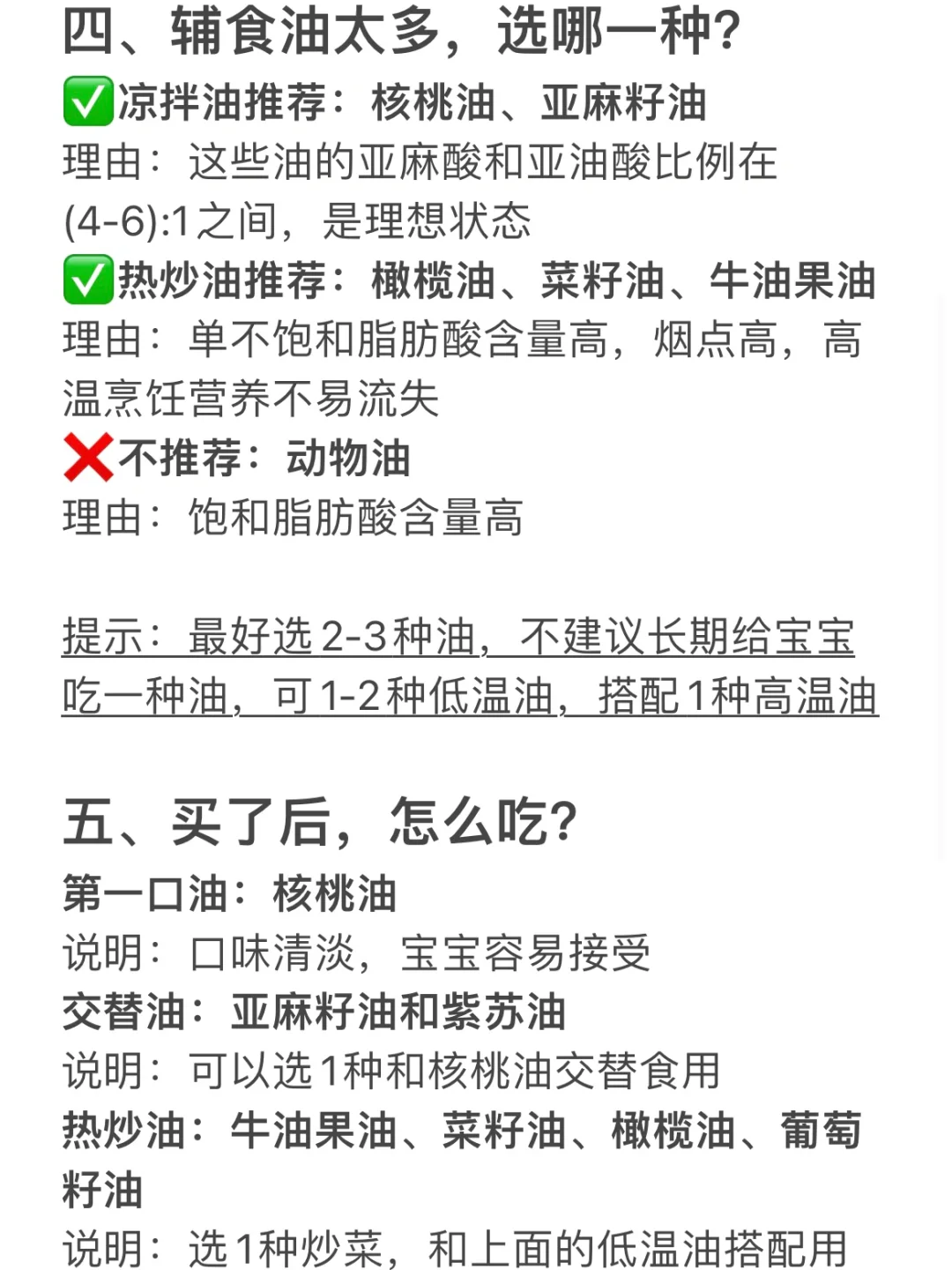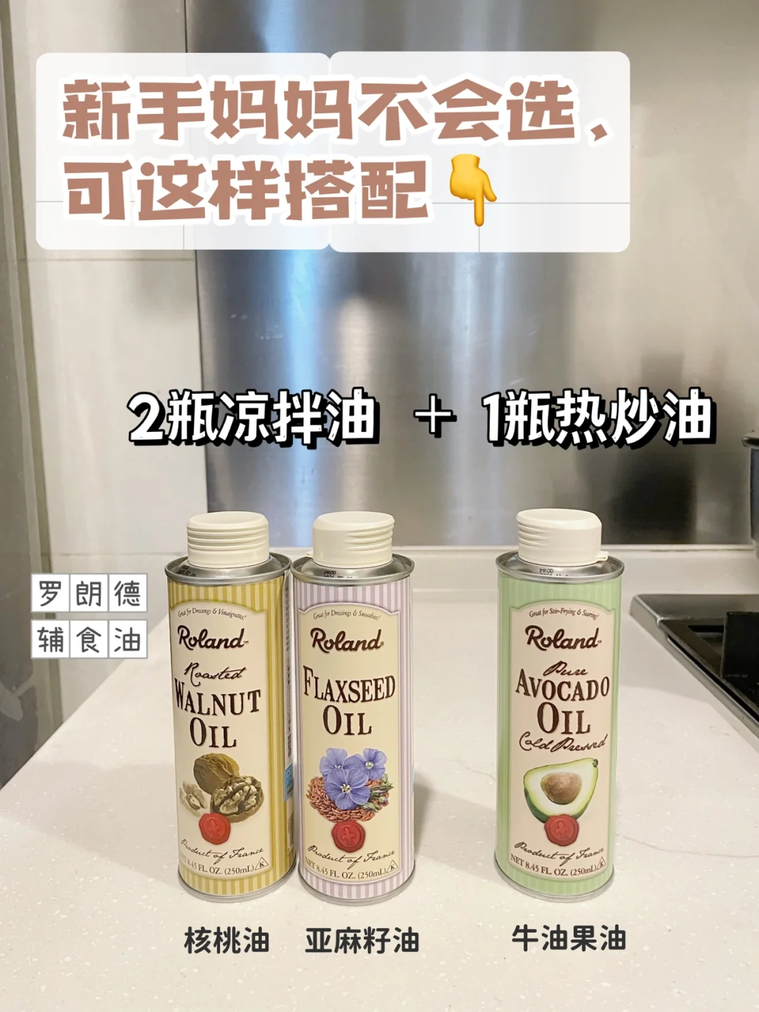 我家吃的是罗朗德辅食油,瓶口都是缝隙形的,流速缓慢,用量很好掌控。他家的核桃油中亚麻酸+亚油酸含量在75%;牛油果油油酸含量高达70%;亚麻籽油有57%亚麻酸含量;都是淡淡的植物香,肠胃容易消化。新手妈妈如果不知道怎么选的,可以试试这家的辅食油。