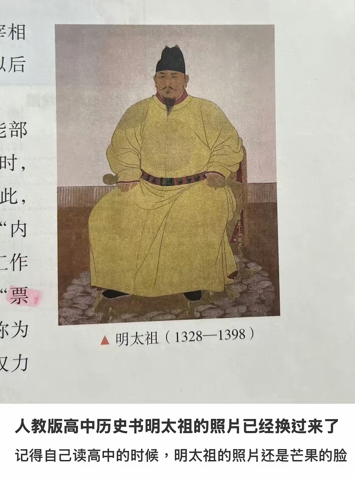 看到曾经初中那“鞋拔子脸”朱元璋画像被换掉了,以台北故宫的画像为准替换了原来的“鞋拔子脸”现在这是“标准帝王相”,这才是真实的大明掌舵人画像。 说实话,以前那张图,但凡长点脑子琢磨一下,都觉得不对劲。你想啊,朱元璋当年去投奔郭子兴的时候,是个要饭的和尚,可郭子兴为啥一眼就相中了他,甚至后来还把干女儿马皇后许配给他?咱们老百姓找对象都知道要“郎才女貌”,马皇后那是出了名的贤惠,如果朱元璋真长着一副鞋拔子脸、凹凸不平的怪样子,人家能看上?这根本不合常理嘛。 这就引出一个特别有意思的话题:为什么以前那张明显有问题的画像,能堂而皇之地在教科书里待那么多年? 说来大明其实是最惨的,因为满清的文字狱极其严重,大明的真实历史反而在国外找到了真相,过去几百年一直是丑化大明,包括大明的奠基人朱元璋。这些年在国外陆续发现的大明典籍,证明了大明没有满清笔下的那么不堪。国家将来也会重修明史,为大明正名,这只是第一步。 直到后来,我读到了明末清初一个叫阎应元的英雄故事,才真正被震醒了。大家可能不知道这个人,他在江阴抵抗清军,城破在即的时候,写了一副绝命对联:“八十日带发效忠,表太祖十六朝人物;十万人同心赴义,存大明一百里江山。” 我当时看到这句“表太祖十六朝人物”,心里咯噔一下。我就想,如果朱元璋真像那些书里写的那么混蛋,是个纯粹的暴君,那阎应元这样的读书人、这样的民族英雄,为什么要在死的时候,还要打着他的旗号?为什么要把他作为精神支柱来效忠?这说不通啊! 后来我读史料读得多了,特别是看了《明大诰》,我才算是看明白了。朱元璋在《大诰》里给了老百姓多大的权力?他规定,如果地方官贪污盘剥百姓,老百姓可以直接把官给绑了,拿着《大诰》进京告御状,沿途关卡还必须放行!在那些士大夫眼里,这叫“破坏法统”,可在咱们老百姓眼里,这是多大的恩情?这是真真正正地站在穷人这边,跟贪官污吏对着干啊! 所以你看,这就是两种完全不同的视角。写书的那些士大夫,因为朱元璋打压他们、杀他们,所以他们在书里把朱元璋写得奇形怪状、杀人如麻。但是咱们老百姓心里有杆秤,我们知道谁是真心给咱们撑腰的。 教科书换这张图,不仅仅是换了一张画,它其实是一种认知的回归。它告诉我们,历史不是任人打扮的小姑娘。 朱元璋最大的功绩是什么?是“驱逐鞑虏,恢复中华”。在他之前,汉人被压迫了四百年,燕云十六州丢了四百年。是他,一个从最底层摸爬滚打起来的乞丐,硬是把这四百年的屈辱给洗刷了,把汉人的脊梁骨给挺直了。这才是他真正的丰功伟绩! 至于那张“鞋拔子脸”,大概率是后世为了丑化他,或者是出于某种迷信(说什么“奇骨贯顶”)画出来的。现在把它换掉,让太祖爷恢复本来的威严模样,我觉得这是对历史、对这位民族英雄最起码的尊重。 咱们怀念他,不是因为他完美无缺,而是因为他给了这个民族一种自信,一种哪怕跌入谷底,也能重新站起来、把命运掌握在自己手里的硬气!这种精神,才是真正的“大明风华”。