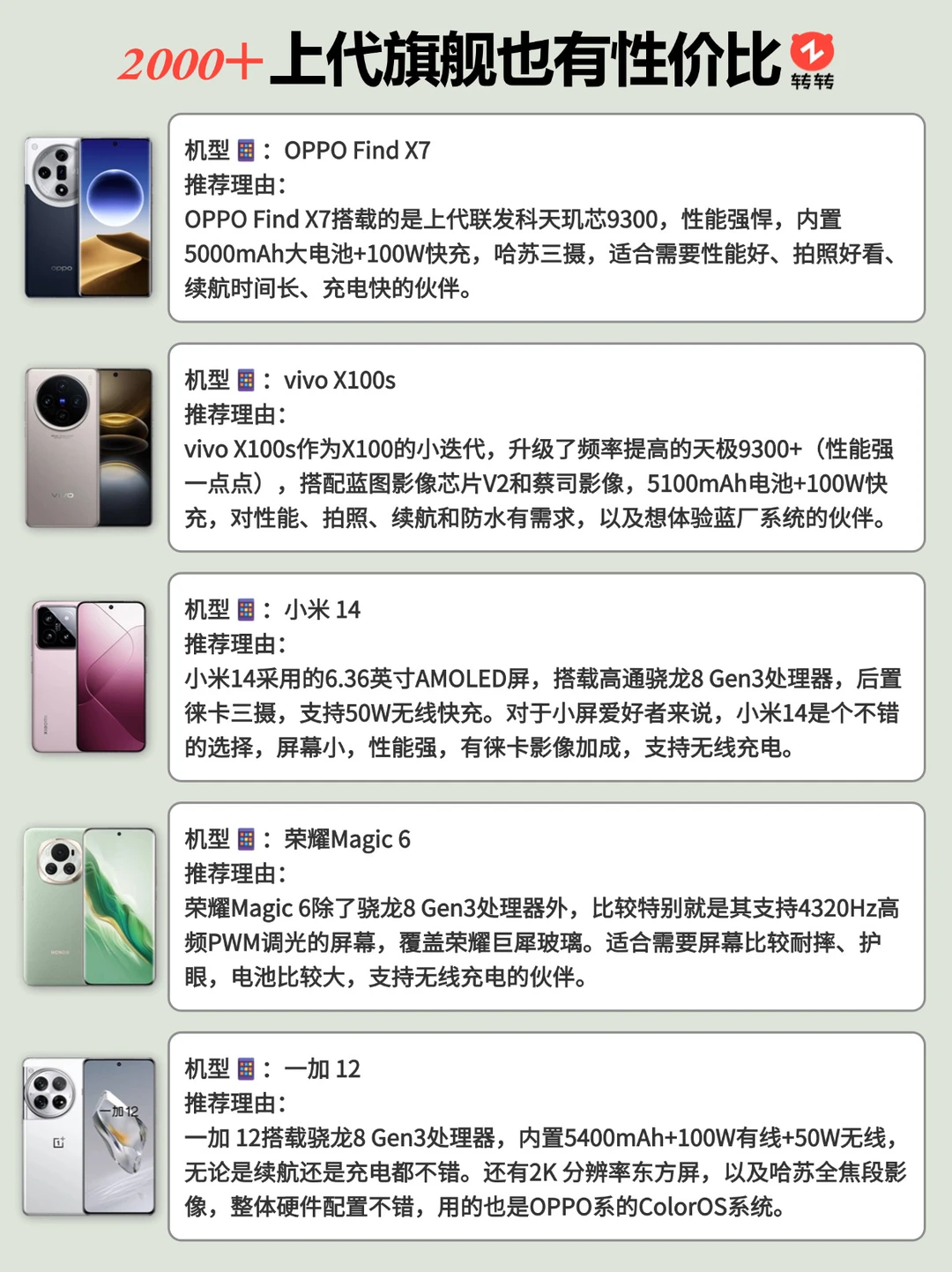 1⃣ 相同价位内往年旗舰性价比高,可以以更低的价格体验性能&拍照&续航&功能等方面均衡的产品,一般来说95新就已经够用;