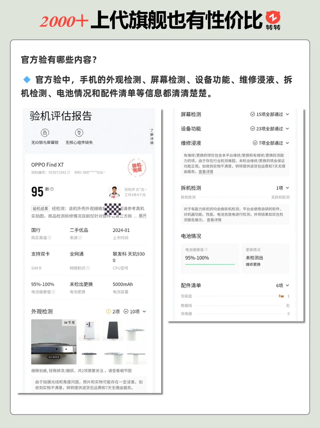 2⃣ 有专业验机,转转【官方验】经过各项检测后,输出详细的质检报告,让二手机各项状况变得透明;
