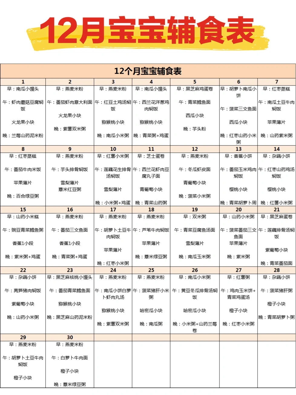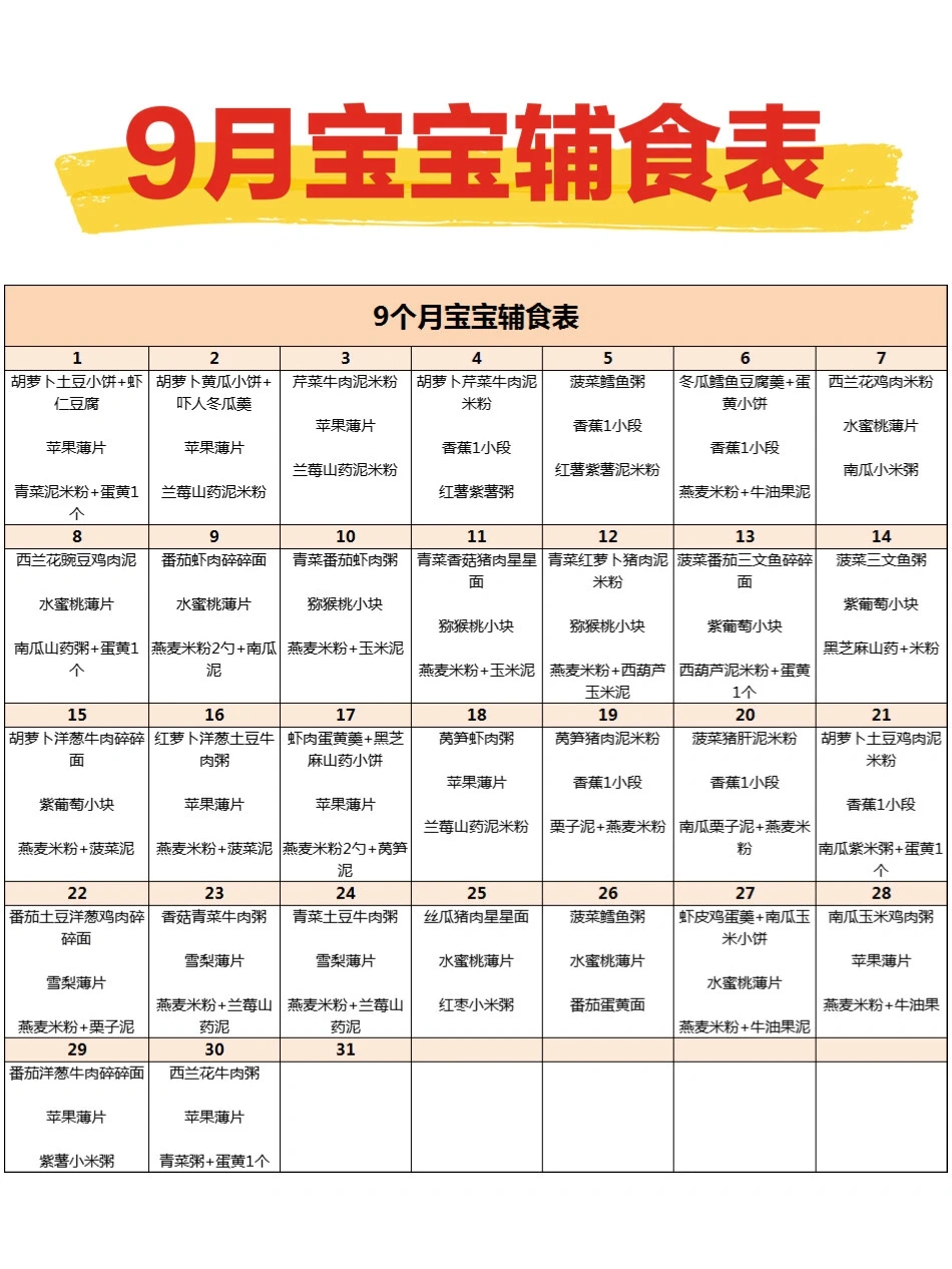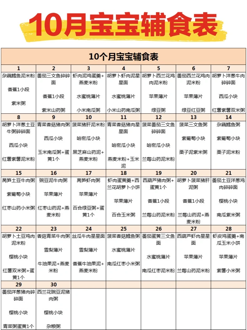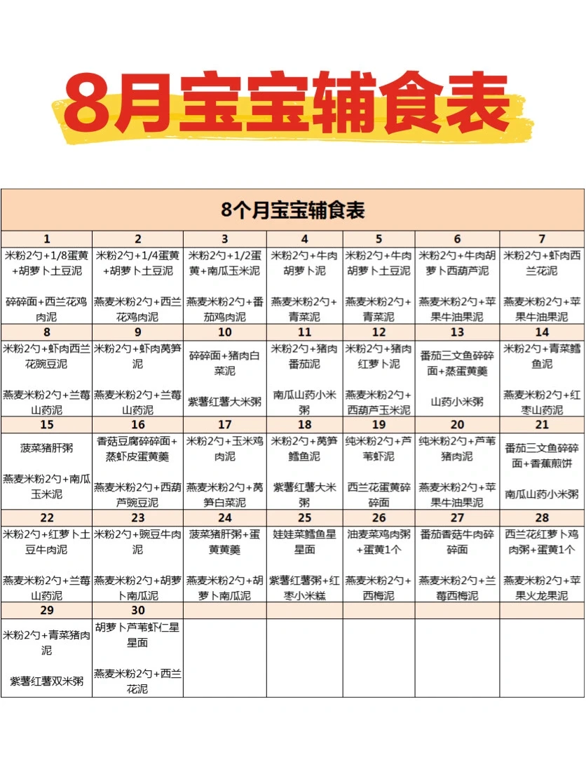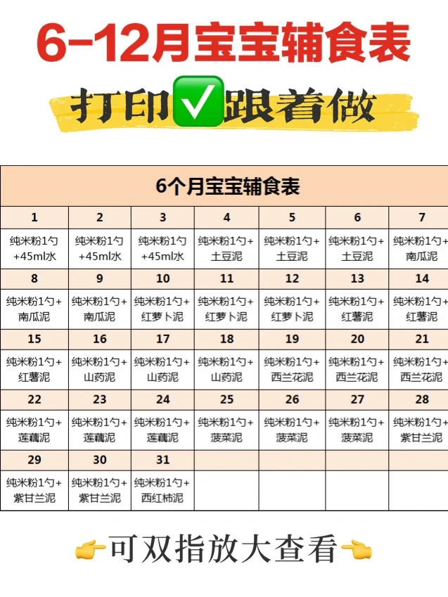 新手妈妈,如果宝宝辅食不知道吃什么,可以看看这个表哦