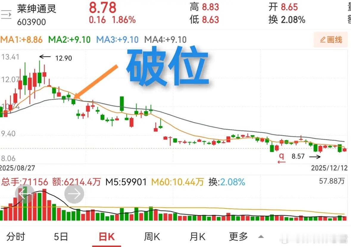 破位就跑,真的不是胆小,而是技术派的保命法则!不少主力就爱抓散户“破位恐慌”的心态,故意砸出破位陷阱,等你割肉离场后,又反手把股价拉回上升趋势。哪怕知道有这种套路,老手也会先离场避险——宁可后面确认趋势再高买,也不愿赌一把可能的深套。毕竟“低卖高买”只是心理上的小别扭,踩中真破位才是实打实的大亏!要是你在高位买的票遇上这种破位,已经亏了不少,你会咬牙扛着,还是先离场保本金?聊只票:梦网科技跌了挺久,最近放量冲到生命线上了,接下来怎么走,还得再看看量能和趋势的脸色。