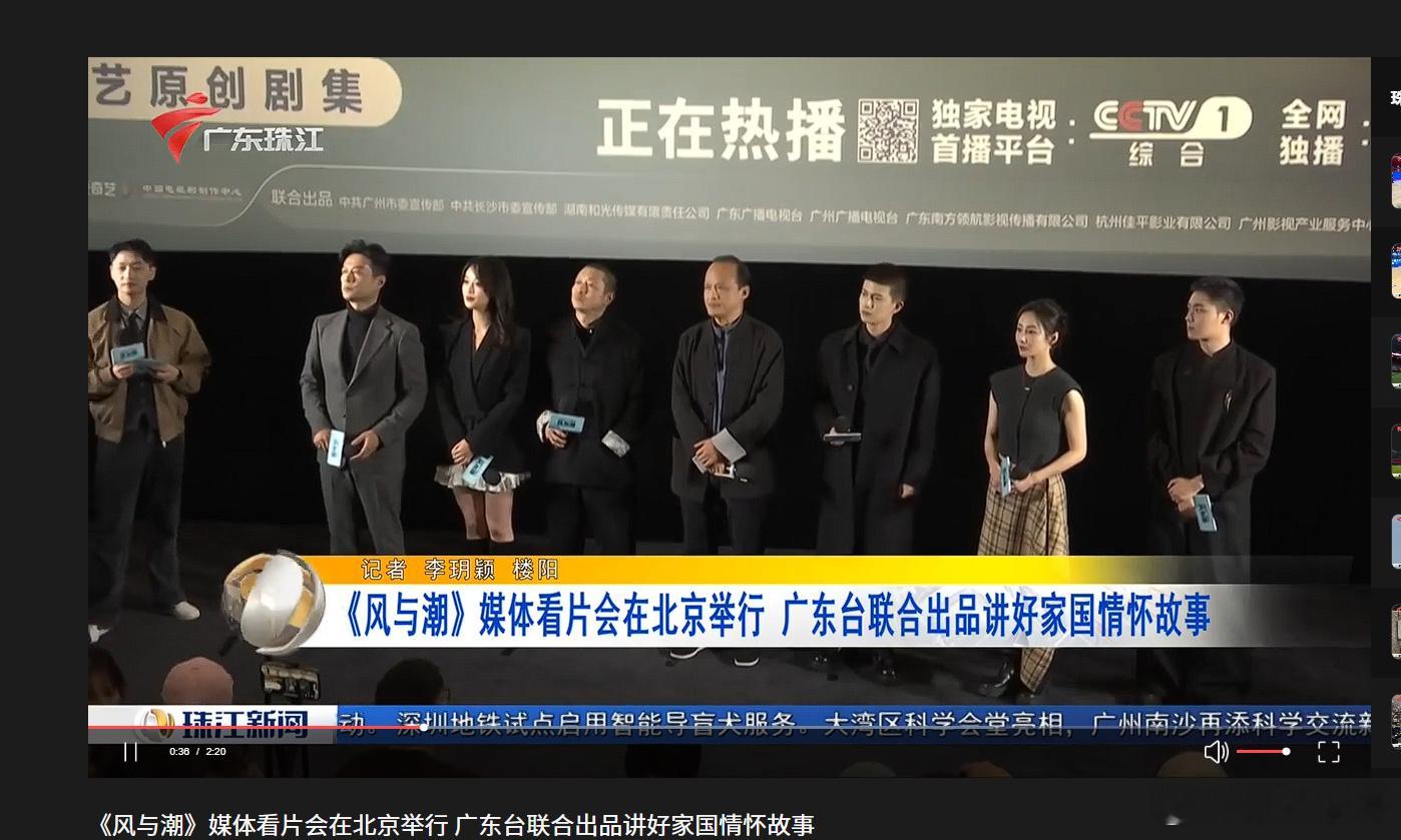 任嘉伦的风与潮今天又登上了广东珠江台!新闻报道的是风与潮12号北京看片会,“广东台联合出品讲好家国情怀”,这是重大革命历史题材献礼剧且好剧的排面