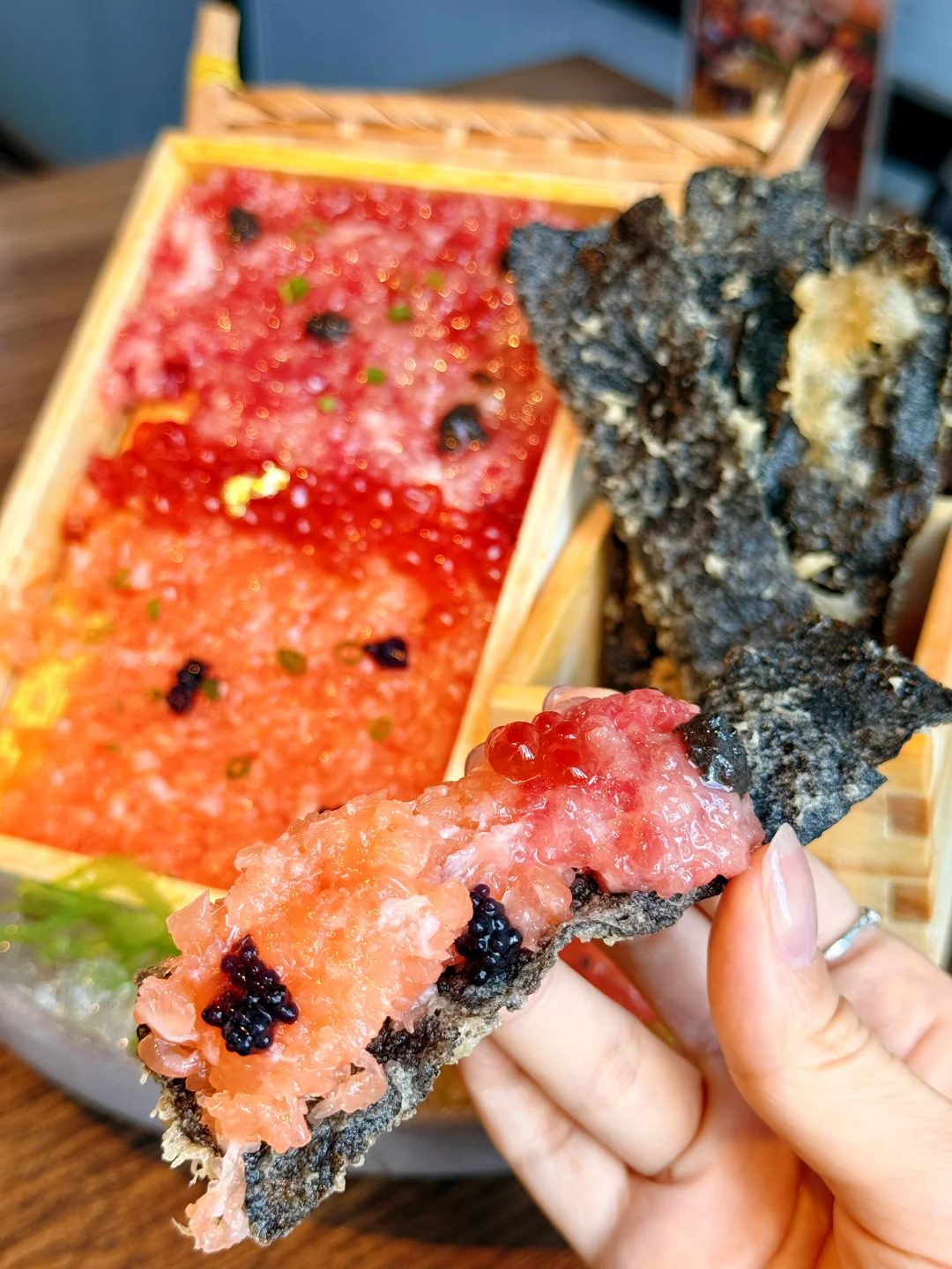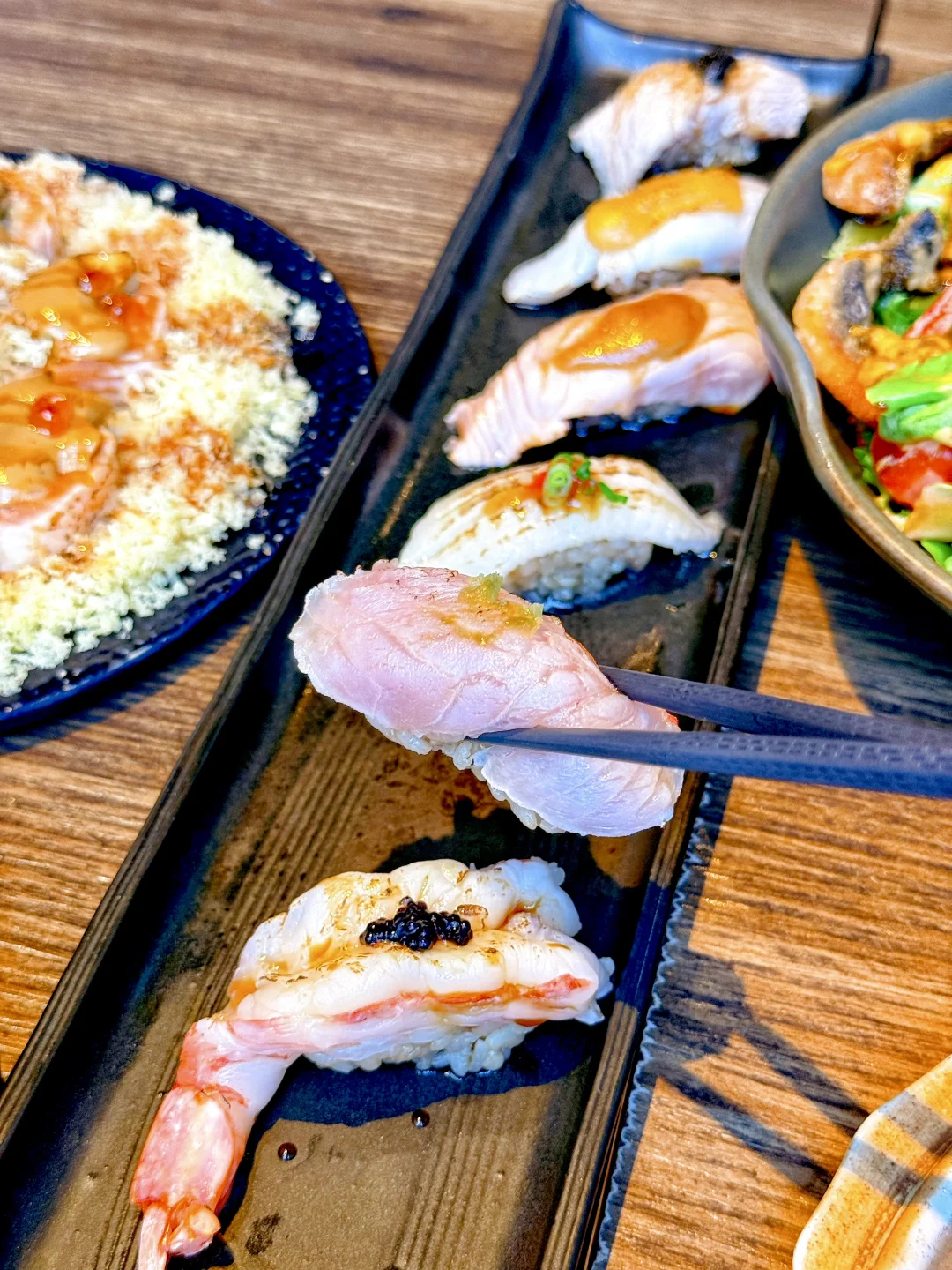 姐妹们!!这家真的不夸张,是我近期在曼谷最惊喜的高端日料!! 超大块鹅肝寿司🍣 那种鲜嫩、油脂在嘴里轻轻化开的满足感🤩🤩 炙烤拼盘🍣 Toro、三文鱼、鳗鱼、虾、每一贯都炙得恰到好处,油脂被轻轻逼出来,香气十足 非常适合第一次来点它=全都吃到不后悔那种! 从🇯🇵空运✈️食材! 不管你点什么,从刺身到烤物都新鲜到不行✨ 真高端但又不会很贵! 📍Sushi Mori (就在central world 对面)