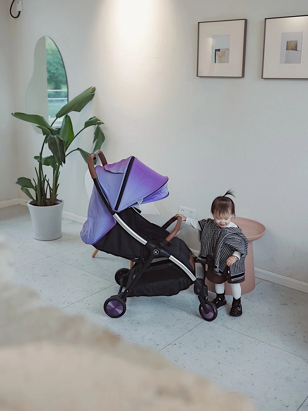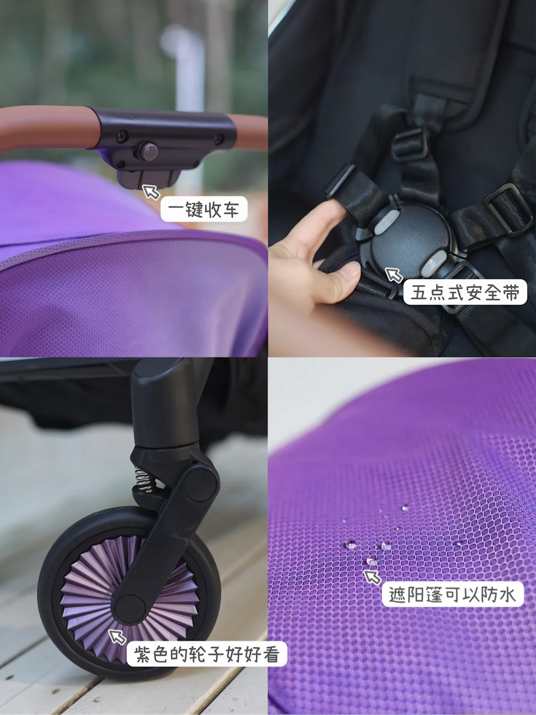 小宝贝的推车是Kathie凯仕宝K20,作为一枚颜控宝妈de我,高级紫真的是成功治 愈了我🥰细节决定整体,特意搭配了炫彩紫轮,出门回头率敲高的~而且超大遮阳棚不仅可以防晒还防水,这样一来,就完全不用担心宝贝会被太阳晒到,被雨淋到了💦在这烟雨朦胧中,可以让宝贝感受不一样的美[自拍R]