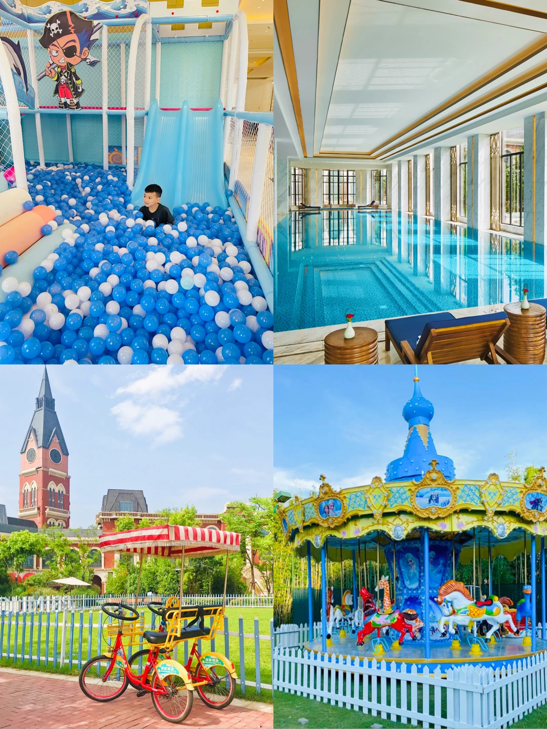 游泳池是度假酒店的标配,他们有室内还有室外泳池,夏天宝贝们zui爱的就是玩水啦~