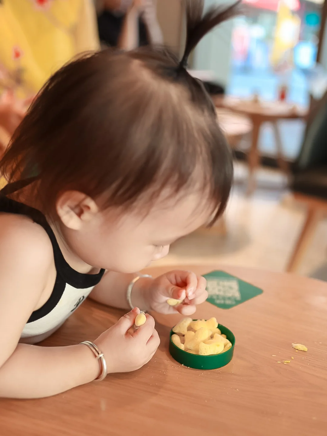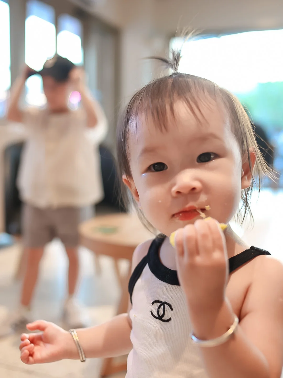 我们每次出门都会给她带点小零食,像米饼都是单独小包装的,随身携带都很方便♥️周末带她出去找小野哥哥玩,两个人见面真的是敲开心的~一起打打闹闹也是幸福🥰哥哥给她带了点果泥,她也很开心的拿出泡芙跟米饼跟哥哥一起分享,你喂我我喂你的,样子也太融洽了🌈