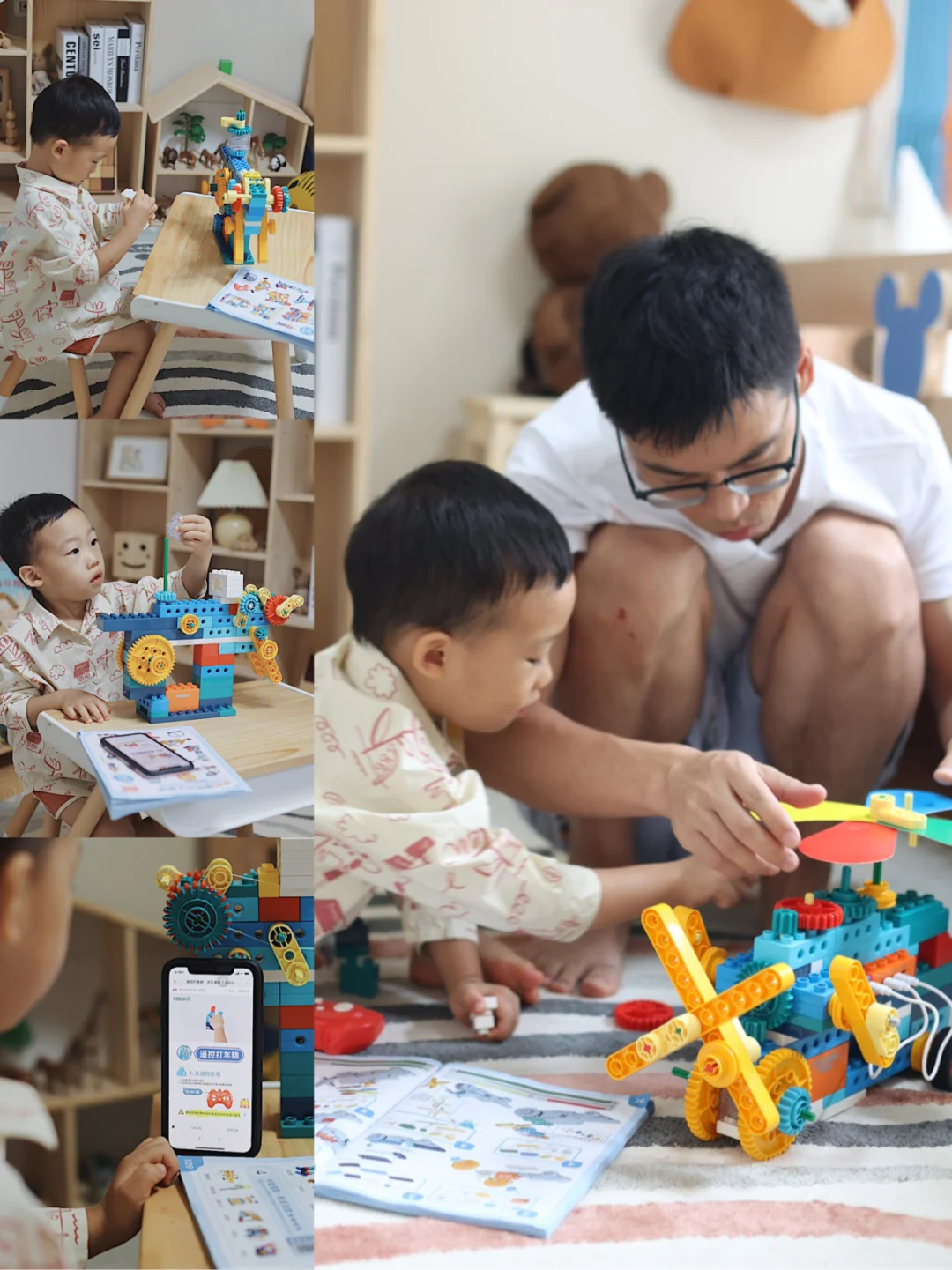 这款拼插也很赞呢!会有对应的卡片,上面有对应的形状,宝宝根据卡片上的图形来闯关就可以啦!小一点的宝宝就可以锻炼娃手部的精细运动。不过有一些挑战性,需要在大人的指引下搭建!也是可以发挥孩子想象力的一款好益智玩具哟!