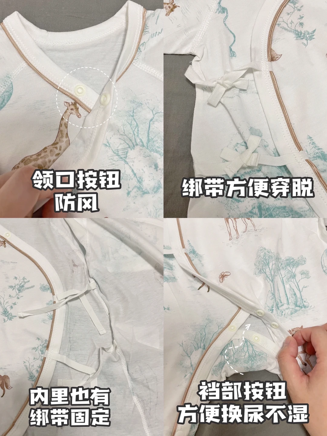 ● 裆部暗扣设计:轻松换尿片,穿脱更方便