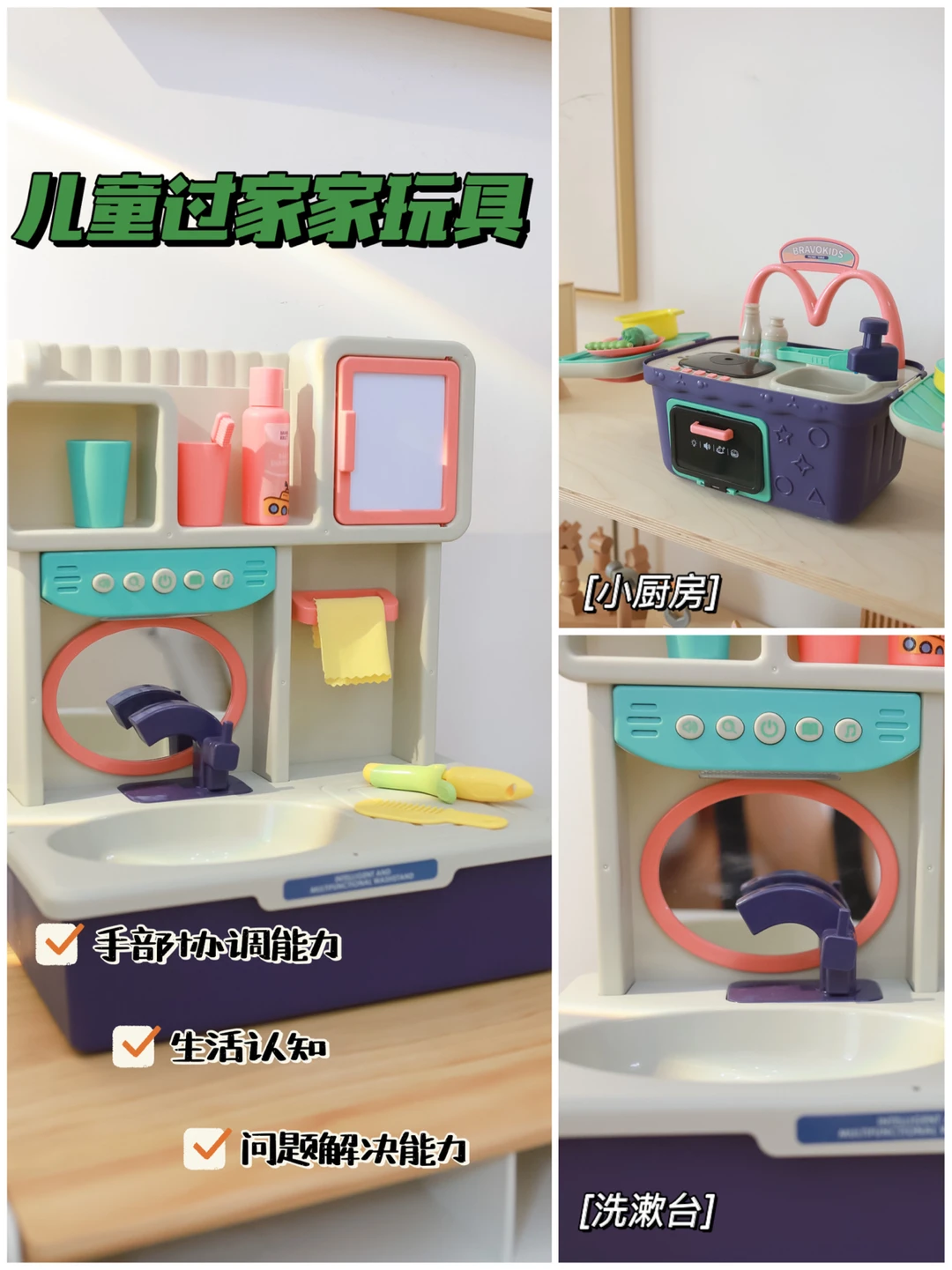 不得不说,女孩子对过家家真的是天生的喜爱。我们家小星星才一岁多一点都不例外,真的很喜欢玩这个,有洗漱台还有小厨房的