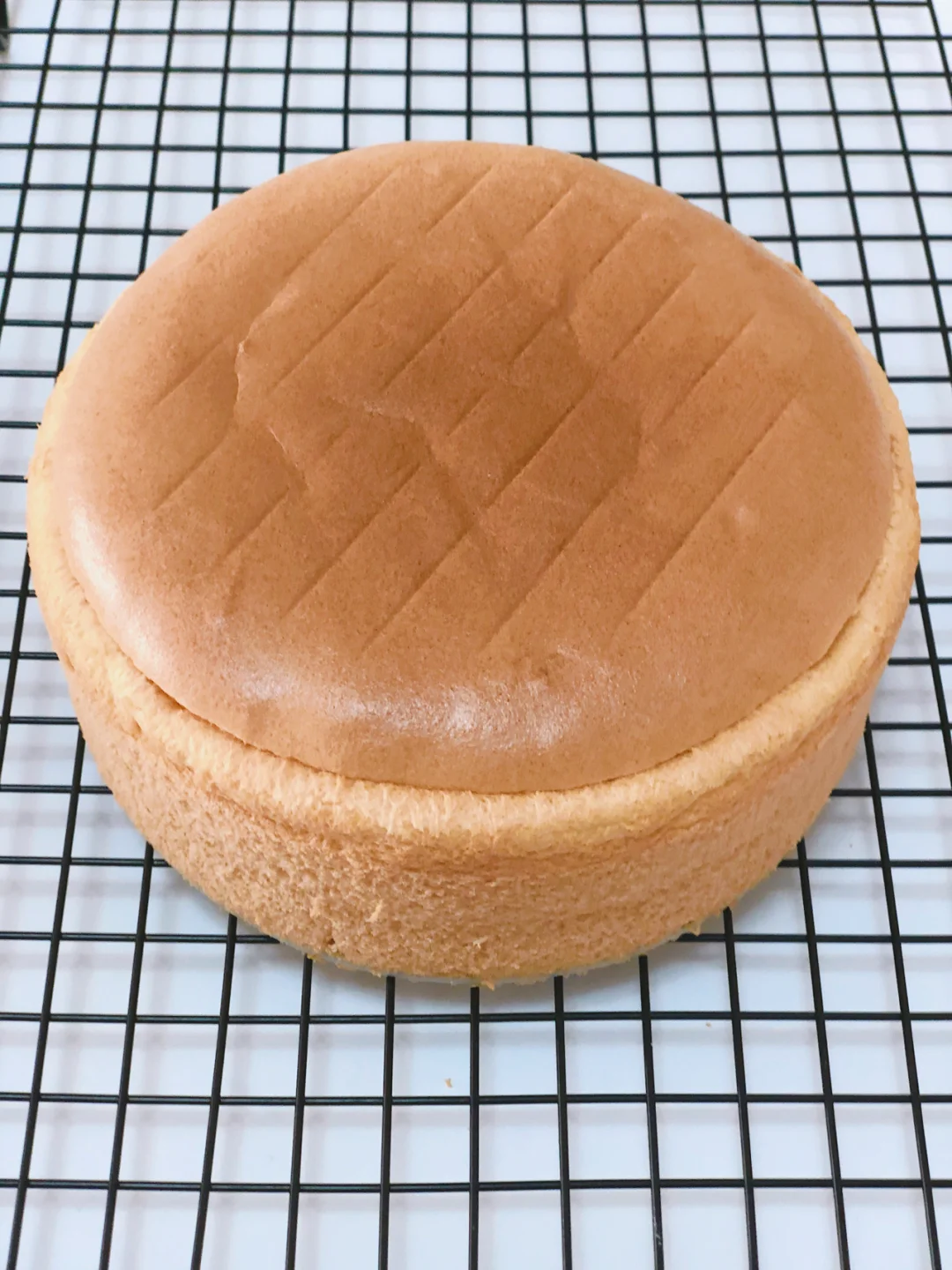5️⃣烤完震一下倒扣在冷却架上,完全放凉再脱模就可以啦。
